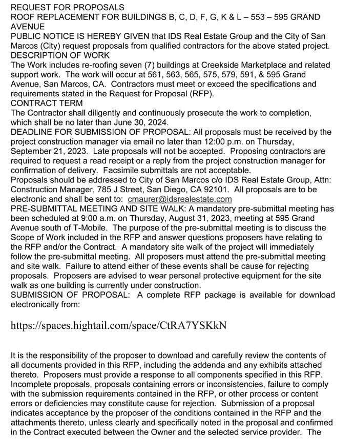 /s/ Scot M. Robinson, CEO with Jordan Z. Marks, SD County Clerk/Recorder of San Diego on 7/21/2023 8/10, 8/17, 8/24, 8/31/2023