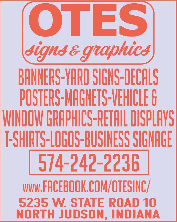 The Market Advertising,Inc. 712 W.Talmer Avenue Post Office Box 218 North Judson,IN 46366 Phone:574 / 896-5911 Fax Only:896-5919 Washington Twp Fire Dept. EVER EVER Y THURSDA Y THURSDA Y Y DOORS OPEN 5:30pm CST BINGO starts 6:30pm CST Corner of State Rd.23 & Division Rd. 574-772-4954 lic.#120620/120615 PULL TABS JACKPOTS DOOR PRIZE FREE ~~Happy 40th Anniversary~~ 1983-2023 WEDNESDAY,MARCH 22,2023 www.fernbaughsjewelers.com TheMarket VOLUME 41 ISSUE 12 To Learn About Us or View Weekly: www.themarketadvertising.com OLD FASHIONED HYMN SING Eagle Creek Community Church A Non-Denominational Church At the Intersection of County Roads 700 Eand 25 N 3 Miles East of Knox W O R S H I P S E R V I C E E V E R Y S U N D A Y - 1 0 : 3 0 A M SUNDAY, MARCH 26 TH - 6pm FIVE STAR 10% OFF COUPON SAVE UP TO $ 300 OFF NOW GOOD MONDAYOR TUESDAY MARCH 27TH OR MARCH 28TH for any purchase excluding Tobacco & Lottery Ticket Sales You may take 10% off your purchase up to $30.00 Limit One Per Family Coupon Expires 3/28/23 Black Oil Sunflower $29.95 for 50#