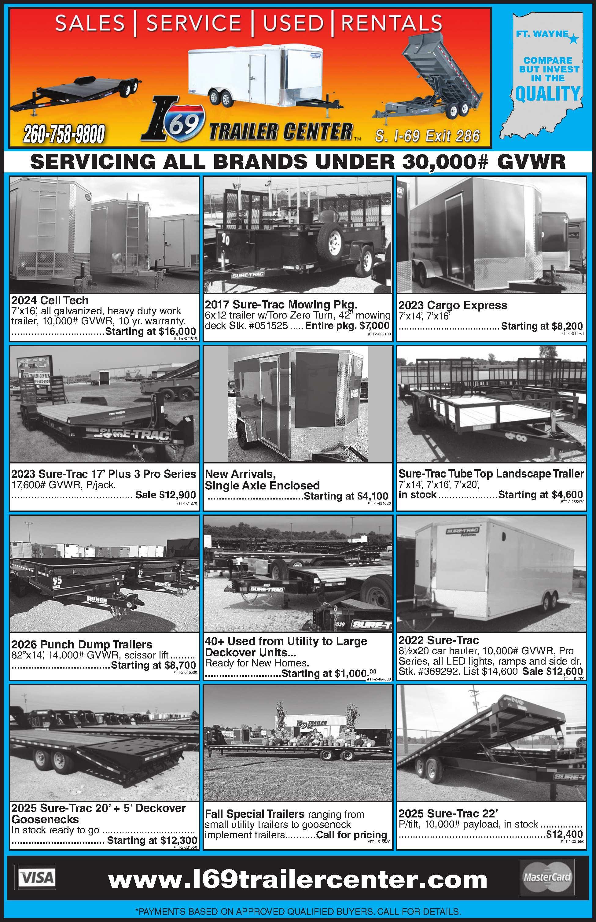 ENCLOSEDTRAILER. 10’,plywood linedandramps.$2,495.Humphrey’s OutdoorPower,Greencastle,IN. www.humphreysoutdoorpower.com 765-653-3019 523980