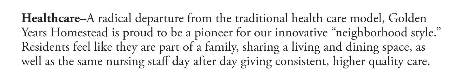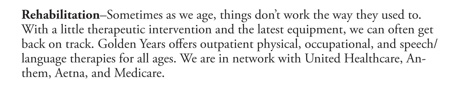122 www.councilonseniorservices.org We are now taking commitments for our new homes in The Orchard! To schedule your tour, call 260-749-6725. 8300 Maysville Rd. | 3136 Goeglein Rd. Fort Wayne, IN | www.goldenyearshome.org