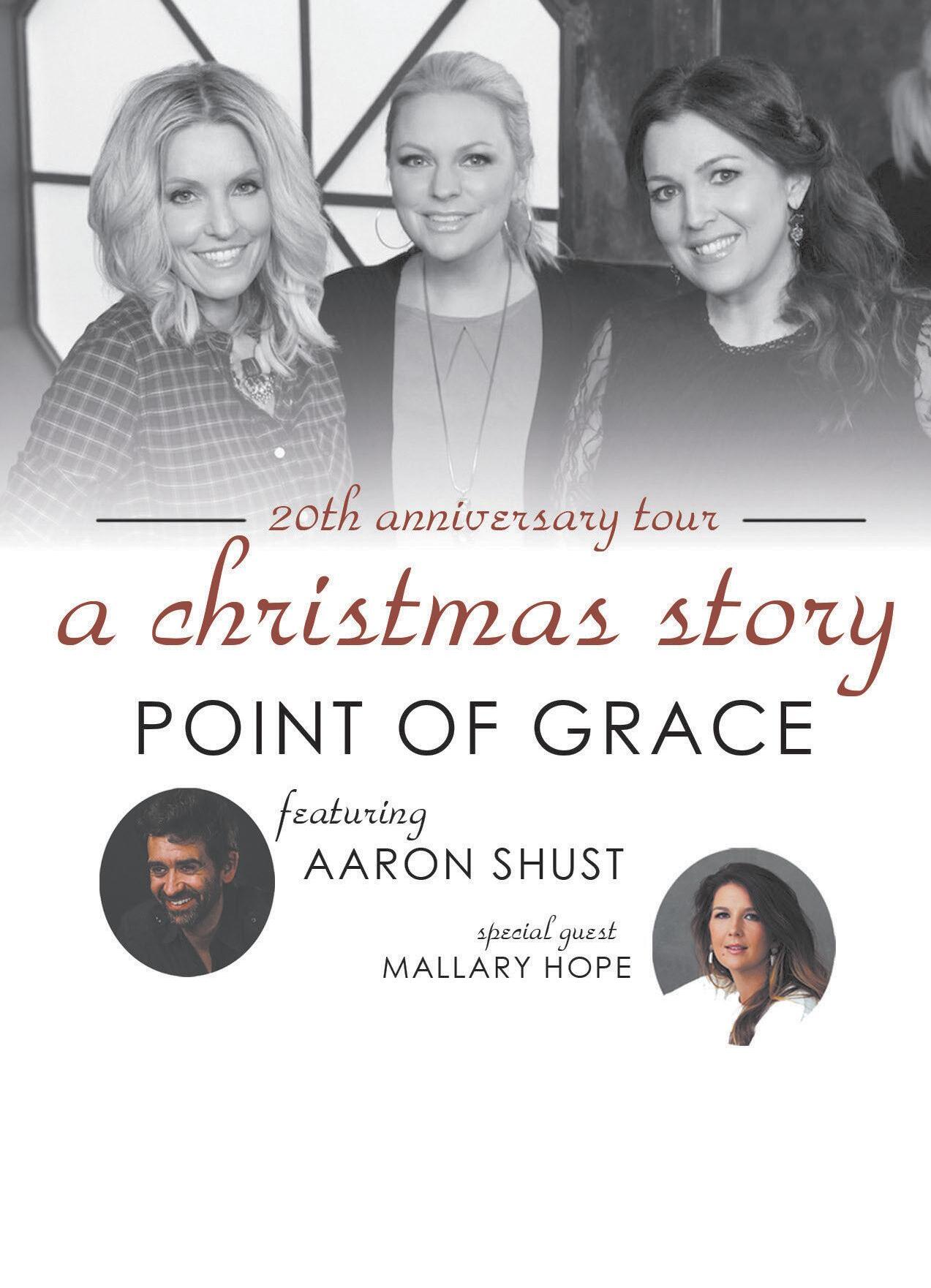 • Saturday, Dec. 21, Point of Grace with Aaron Shust and Mallary Hope, 7:30 p.m., $55/$35/$25