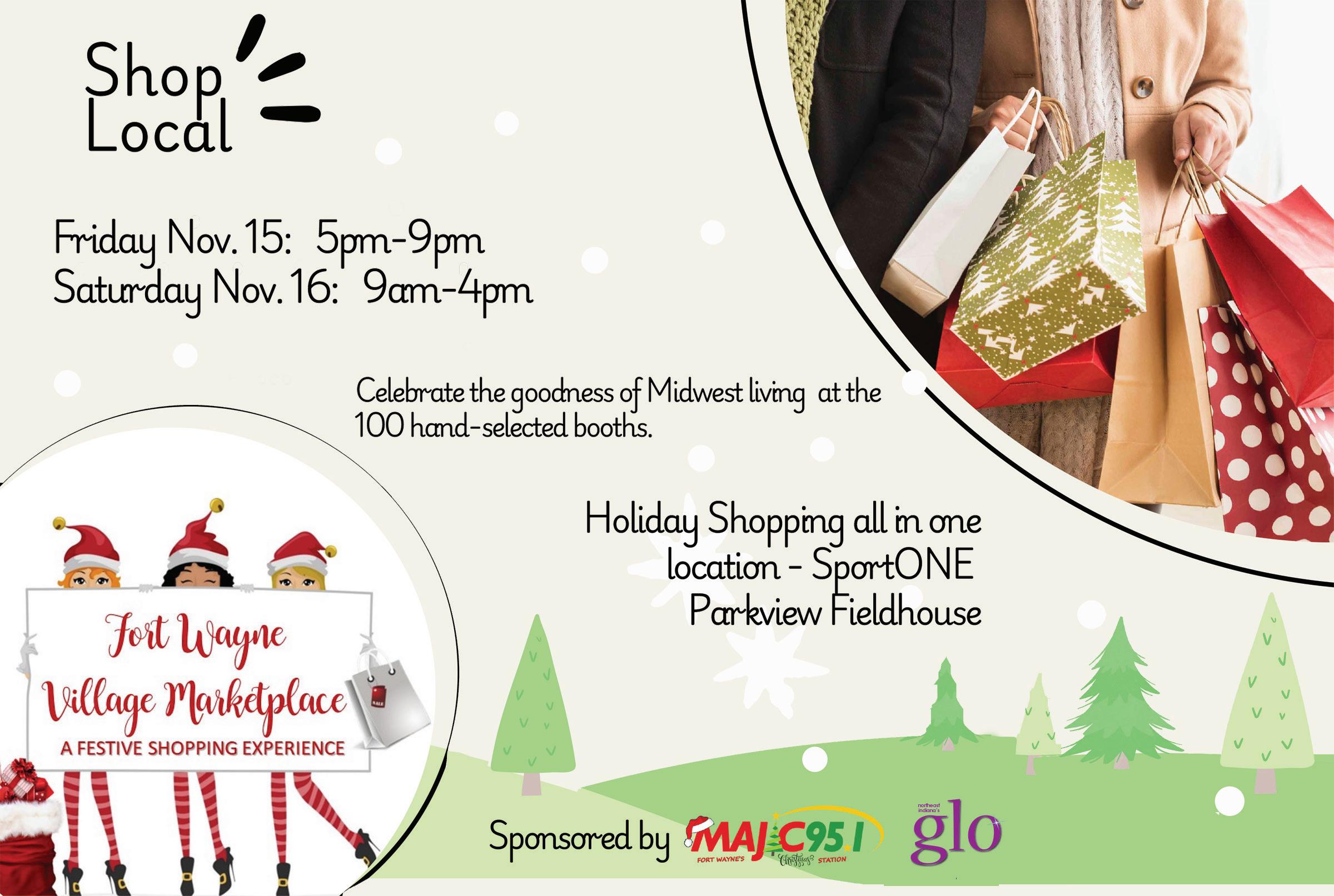 Kick off the holiday season with two days of holiday shopping, featuring over 100 vendors. Enjoy the unique shopping experience as shoppers discover small business merchants showcasing everything from top designers, boutiques, gifts, fashion, and home décor to jewelry, art, craftsmen, and gourmet foods. Shopping local has never been so fun, festive, and convenient. https://www.fortwaynevillagemarketplace. com/