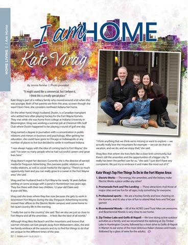 Kate Virag is part of a military family who moved around a lot when she was younger. Both of her parents are from this area, so even though she wasn’t born here, she considers northeast Indiana her home.