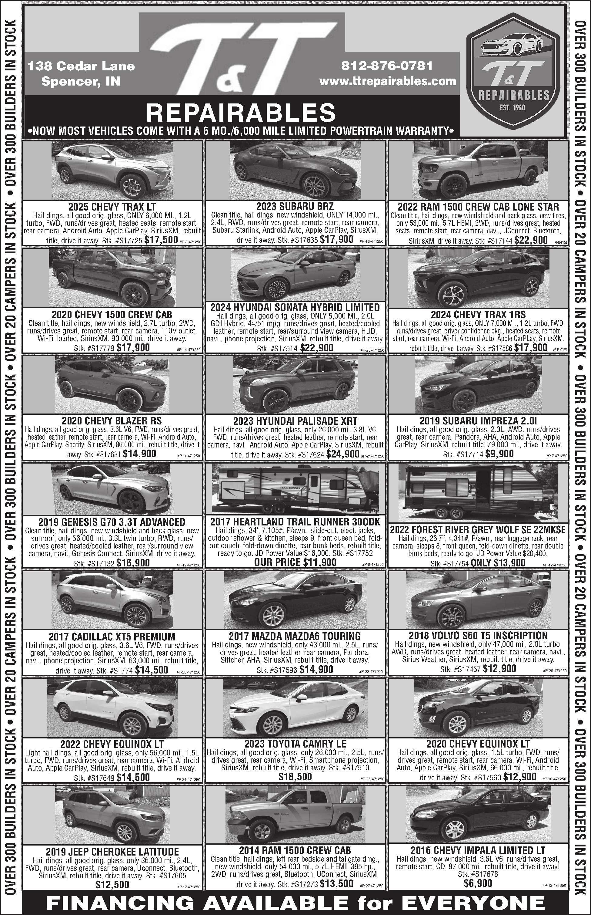 2025RAFFLECAR-1939CHEVROLETMASTER85. Willbegivenawayatthe57th NewportAntiqueAutoHillClimb,Sunday,Oct.5,2025.206ci/6cylinder,3speedon column.Tickets:25for$20or125for$100.Sendcheck/moneyorderw/phoneno.to: NewportLionsClub,Box398,Newport,IN47966.Lic.001750.Forreceipt;a self-addressedstampedenvelopeMUSTbeincludedw/ticketmoney. 765-492-4220,newport-antique-auto-hillclimb.sparespace.com 464290
