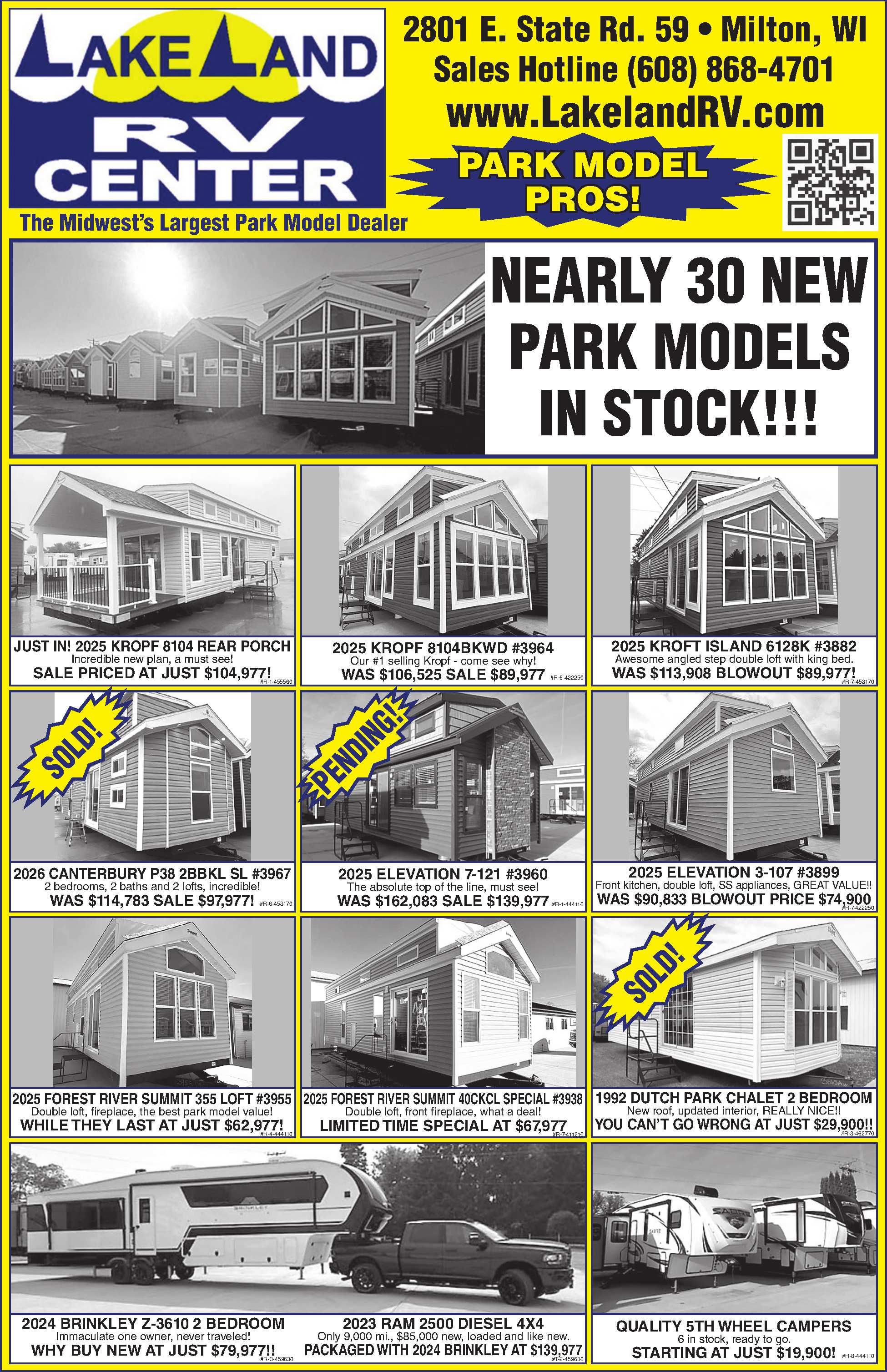 2017TRACEAIR275. 33’6”long,6,130#,sleeps10, fullsizeshower,onepowerslide-outandawning,new tires,verycleaninsideandout,allaccessoriesincludea storagecover,featuresaflatroof.$14,900.Jenison,MI. 616-291-6440 462920