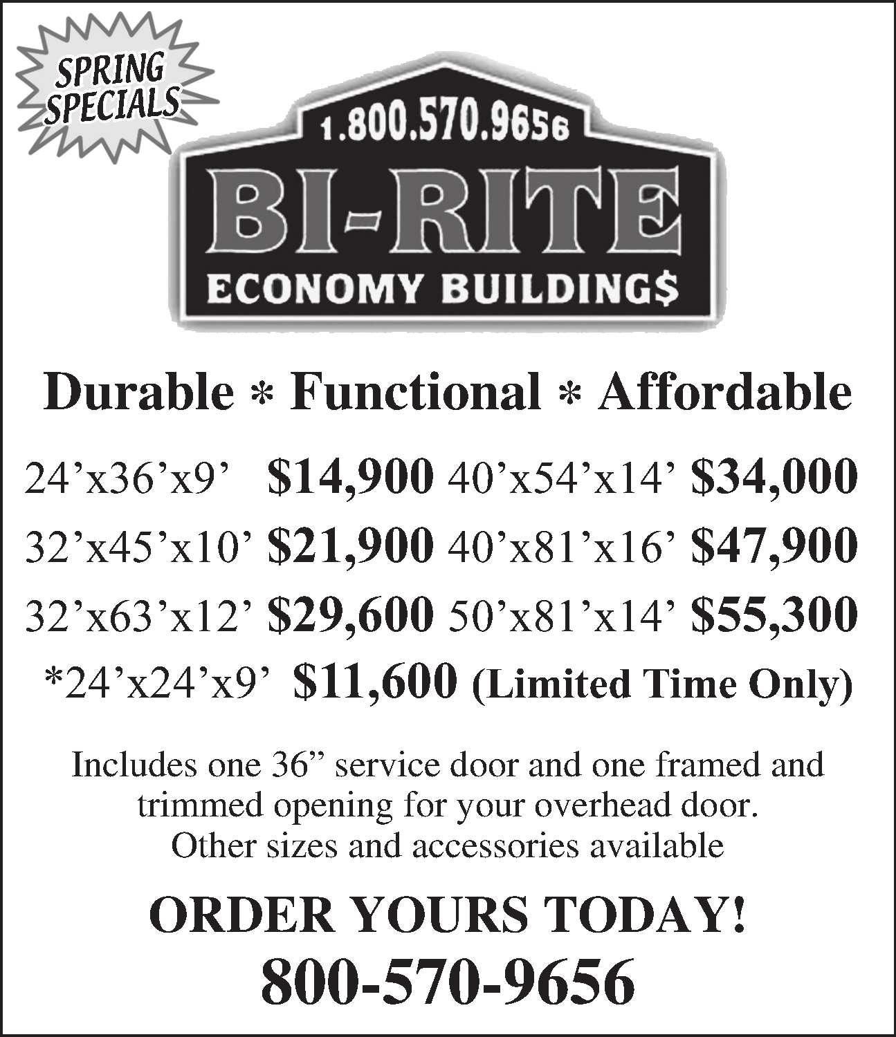 10’x16’BARGAINBARN. $3,300,$153 RentToOwn.SupplyingMichiganwithqualitybuiltportablebuildingsforover30years. Freedeliverywithin70milesofClare. Statewidedeliveryavailable.Miller’sWoodworking,Clare,MI. 989-386-8110voicemail 446070