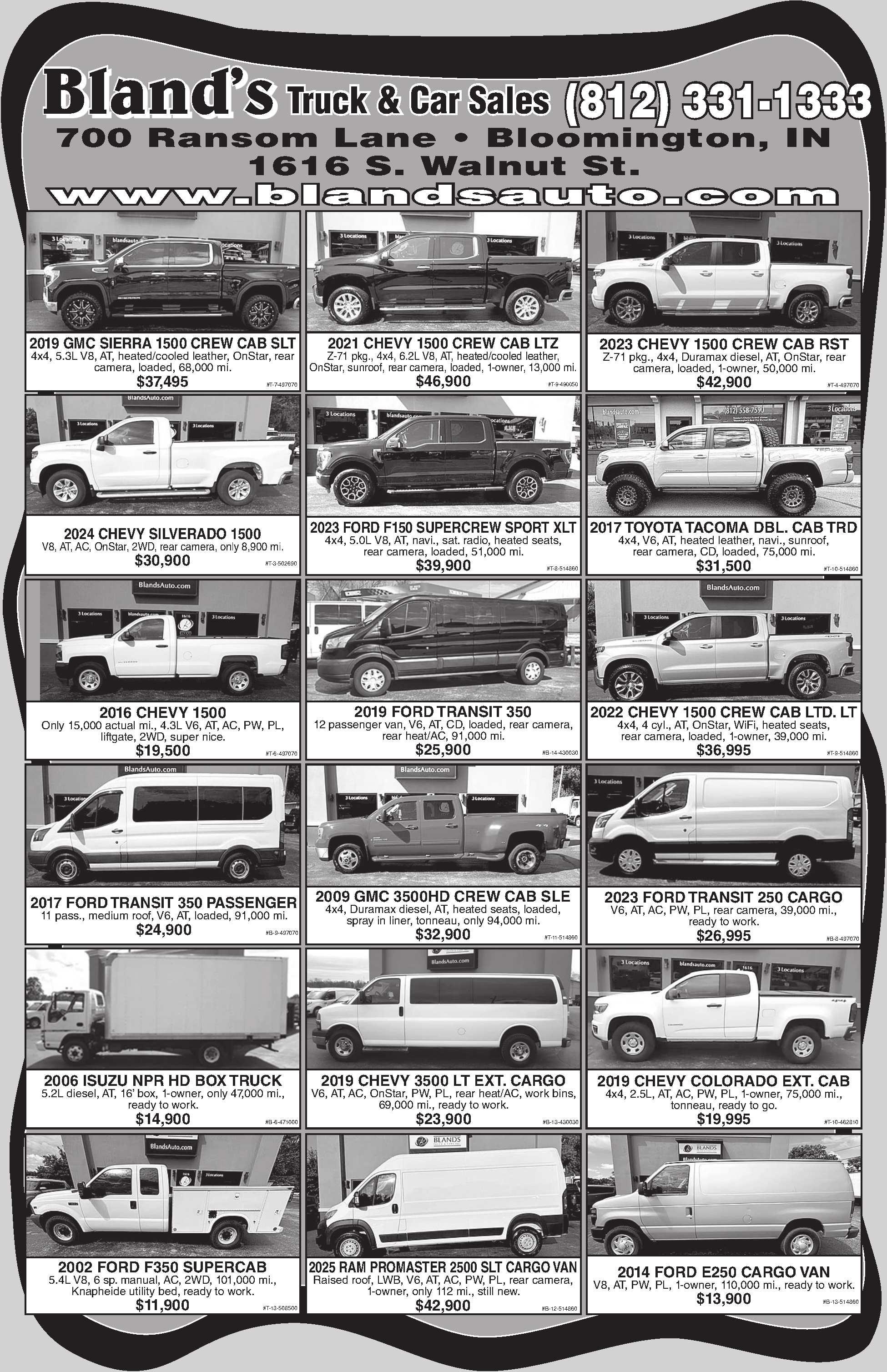 2020CHEVROLET1500CREWCABLT. 4x4,4cyl., AT,OnStar,loaded,rearcamera,tonneau,only36,000 mi.,likenewcond.$33,500.Bloomington,IN. 812-327-4240 512220
