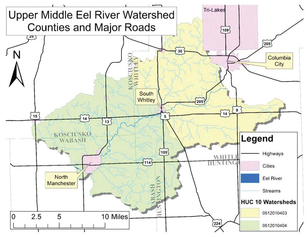 Data from water quality monitoring in 2016-2018 identified three critical areas in the Upper Middle Eel River Watershed: Hurricane Creek, Pony Creek and Sugar Creek. Impairments within these critical areas include excess nutrients, sediment and E. coli. Identified causes of excessive nitrogen and phosphorus have been identified as tile drainage, erosion, fertilizer and manure runoff, animal feed operations and wetland loss.