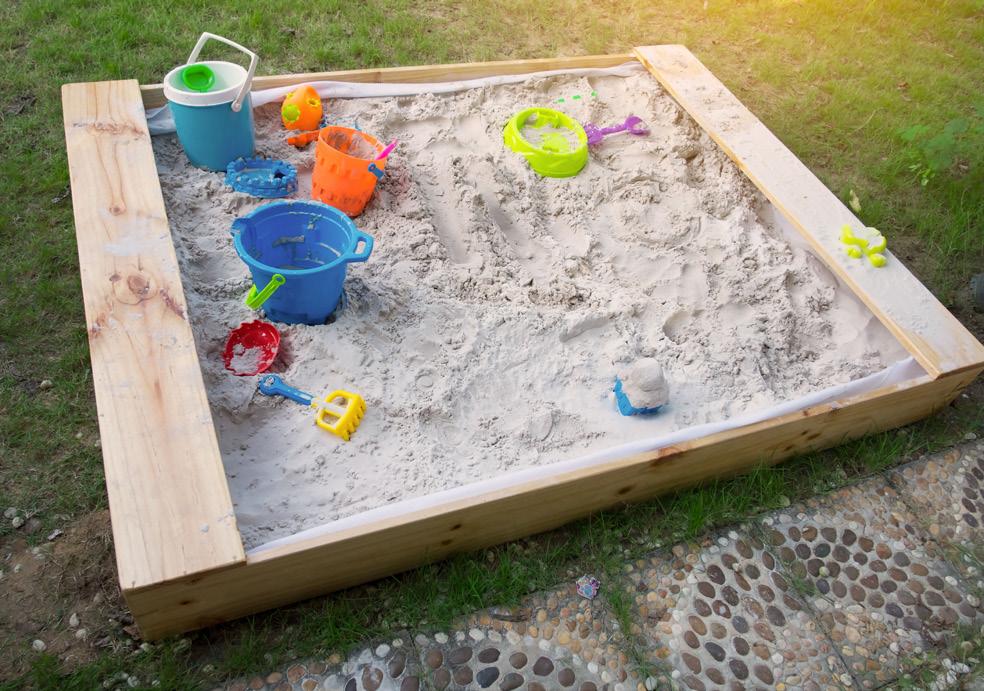 Make your own sandbox . You can use lumber boards, cedar is suggested, pallets, or even a large tire The amount of sand necessary is measured in cubic feet and one 50-pound bag of play sand covers approximately 1/2 cubic foot Remember you do not want the sand to go all the way to the top Most important? Don’t forget to have a cover for the sandbox for keeping animals and debris out, as well as keeping the sand dry
