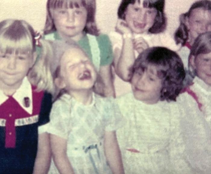 Even though Mom made me wear a fancy dress and uncomfortable patent leather shoes, I’d laugh at every stinkin’ thing I was so dern happy. (Yep, that’s me).