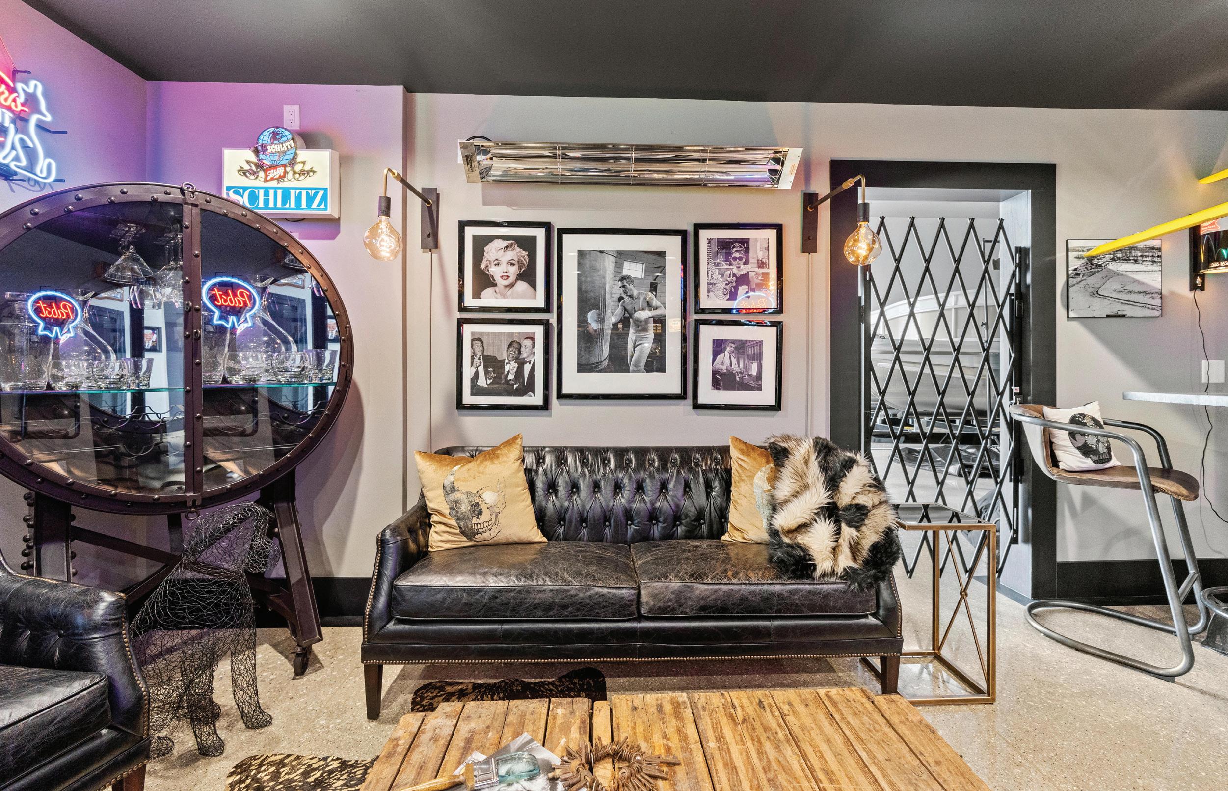 • The bar bathroom features a unique vault safe custom door. What a find this was!