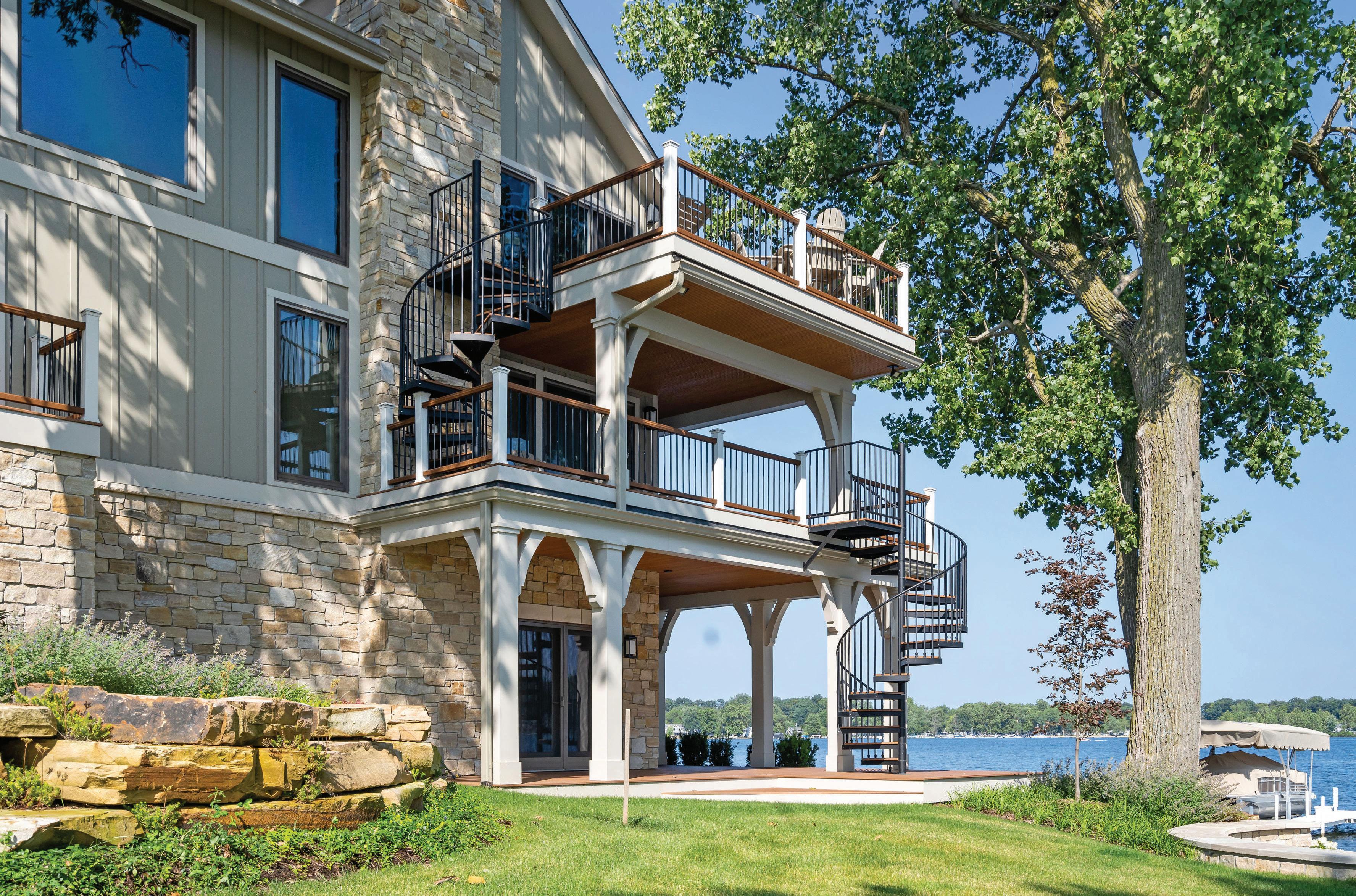 “There was an existing screen porch off the upper level, but it was only accessible from that level,” Burnworth said. “The family wanted to be able to get to the yard from the screen porch, so Todd (Nunemaker) designed a spiral staircase down the east side of the porch with integrated custom-cut Trex® decking that we installed on the stairs,” Burnworth said.
