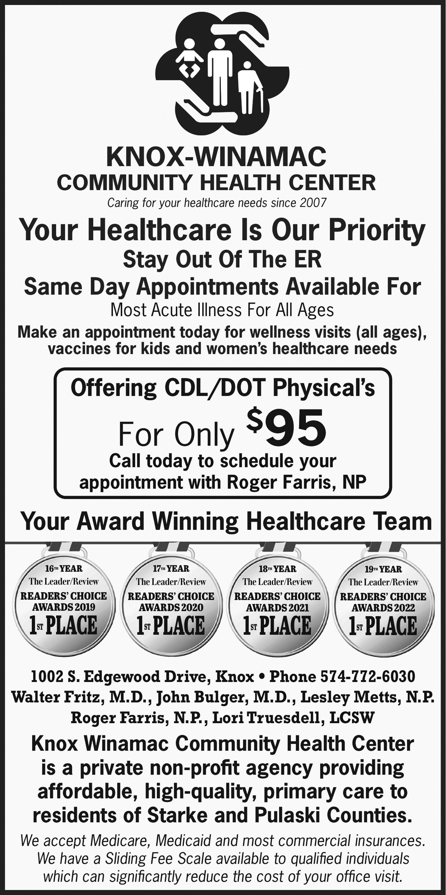 PAGE 2 THE MARKET WEDNESDAY, JUNE 7, 2023 THE FEED BARN, INC. North Judson njfeedbarn.com 896-4040 OPEN M-F 8-5 • Sat. 8-1 Closed Sunday May your dog’s life be filled with Joy Maintenance Plus 22% Protein 12% Fat $3495 40 lb 0104 W. State Rd. 10 North Judson (574) 896-5060 Mon. thru Sat. 10am - 4pm Starke County We Transport Spay & Neuter!! HANDSOME 3 Year Old Domestic, Shorthair Male Cat, Black & White, Booster Shot & Dewormed North Judson 896-2821 Knox 772-6650 Order your Graduation Cakes!! Butter Cookies, Kolackys, Hoagie Buns, Dainties, and MORE! See Us for your Graduation Party Goodies Includes Cole Slaw & Potato Salad Fri., June 9th, 2023 Carry Outs Available 772-4393 Knox American Legion Post 131 707 S. Heaton St. Fr om 4:30 - ?? Specials $12 • Tues: $1.00 Beer Day • Thurs: Draft & Mixed Drinks Starke County WE TRANSPORT Schedule today by calling 317-675-0072 Appointment Required When: 1ST TUESDAY OF EVERY MONTH! Check-in: 6-6:30 am CT Return: 5:30 pm CT Where: Starke County Humane Society • Spay • Neuter • Vaccines BUYING JUNK & repairable vehicles. Best prices paid. Call 574-806-5824 If no answer leave message 26B JUNK CARS/TRUCKS & Repairables wanted. Call for best price on complete car/truck. Call 574-200-0369 or cell 219789-9093 30B FOR SALE: Pickup truck toppers, tonneau covers, bed liners, step bars, full line of accessories in stock. Joe’s Mobile Home & RV Supply, Buffalo, IN, Call 574-2787625. Closed Thurs. & Sun. EST .23B BASS LAKE FESTIVAL JULY 28 - 29 - 30 Activities for all ages! Join Us! Vendors: Craft - Vintage - Distributors Openings Available!! Miss/Mr/Little Miss/Mr Contest Ages 4 to 18 Water Volleyball Team -SIGN UP! Cardboard Boat RaceTime To Start Building Your Boat! Fishing Derby - All Weekend Long @ DD’s Parade Entrants Needed!! Golf Carts Too! AND LOTS LOTS MORE... Check Out All Events At BASSLAKEFEST.COM for Information & Forms
