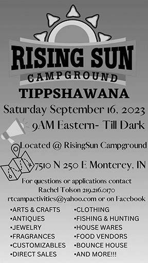 WEDNESDAY, SEPTEMBER 13, 2023 THE MARKET PAGE 3 Located at the Corner of Toto Road & Range Road Tues - Sat 9am-5pm Sun. 9am-2pm CLOSED MON GRANNY’S 574-772-5450 ~Don’t Forget~ We also haveMilk Chocolate Almonds, Raisins, Double Dipped Peanuts, Gummy Bears & More Paula Red Apples & More Local Honey, Canteloupe & Mums HotLunchSpecials: Tues: Pulled Pork Sand.