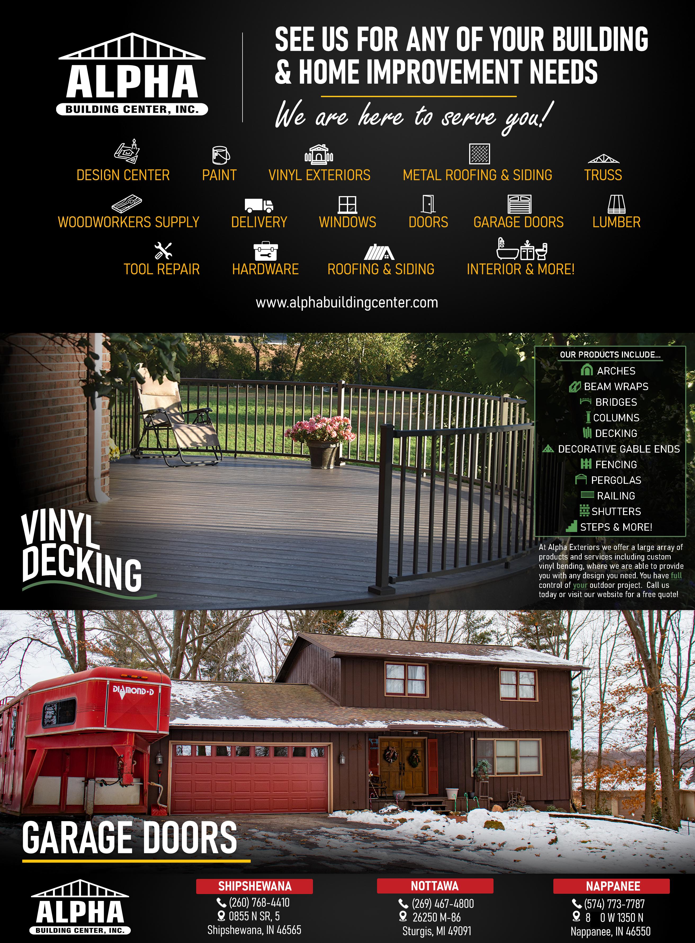 Enjoy the features about the upcoming Midwest Home and Yard Show in Shipshewana, Feb. 10-11 as well as the Builders Association of Elkhart County’s Home and Outdoor Expo which will be held Feb. 24-26. Be sure to come out to at least one if not both of these shows to get new ideas for your home or yard. Both shows will feature local vendors who can assist patrons with getting a wide variety of jobs done around the home.
