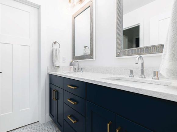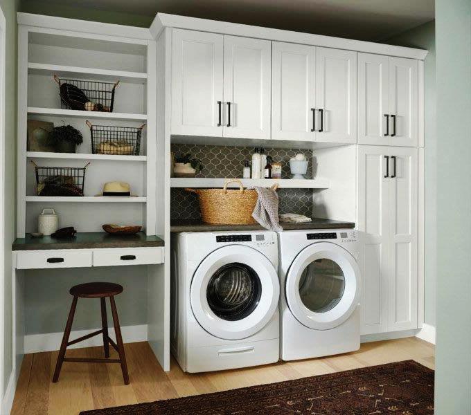 Featuring KraftMaid Breslin Cabinetry in Dove White and Maple Cannon Grey