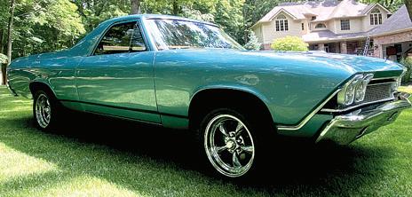 1968CHEVROLETELCAMINO. Immaculateframeoffbuild,5yr.project. Totallyshaved,350hp.fuelinjected, factory4sp.,Moser12bolt.Turquoise paintcolor,tanint.Extensivebuildlist availableforreview.$48,500.Lafayette, IN.