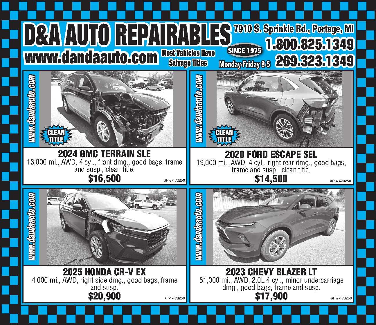 OUTDOOREQUIPMENT-YOUPULLFORPARTS. Lawnmowers,generators, implements.Bringyourtoolsandcheckthemout.Wehaveahugeselection,butdonot inventoryourpartsormakes&models.ForavailabilitystopintodayatLightTruckParts, 1811LakeSt.,Kalamazoo,MI.269-381-2300,www.ltpkz.com