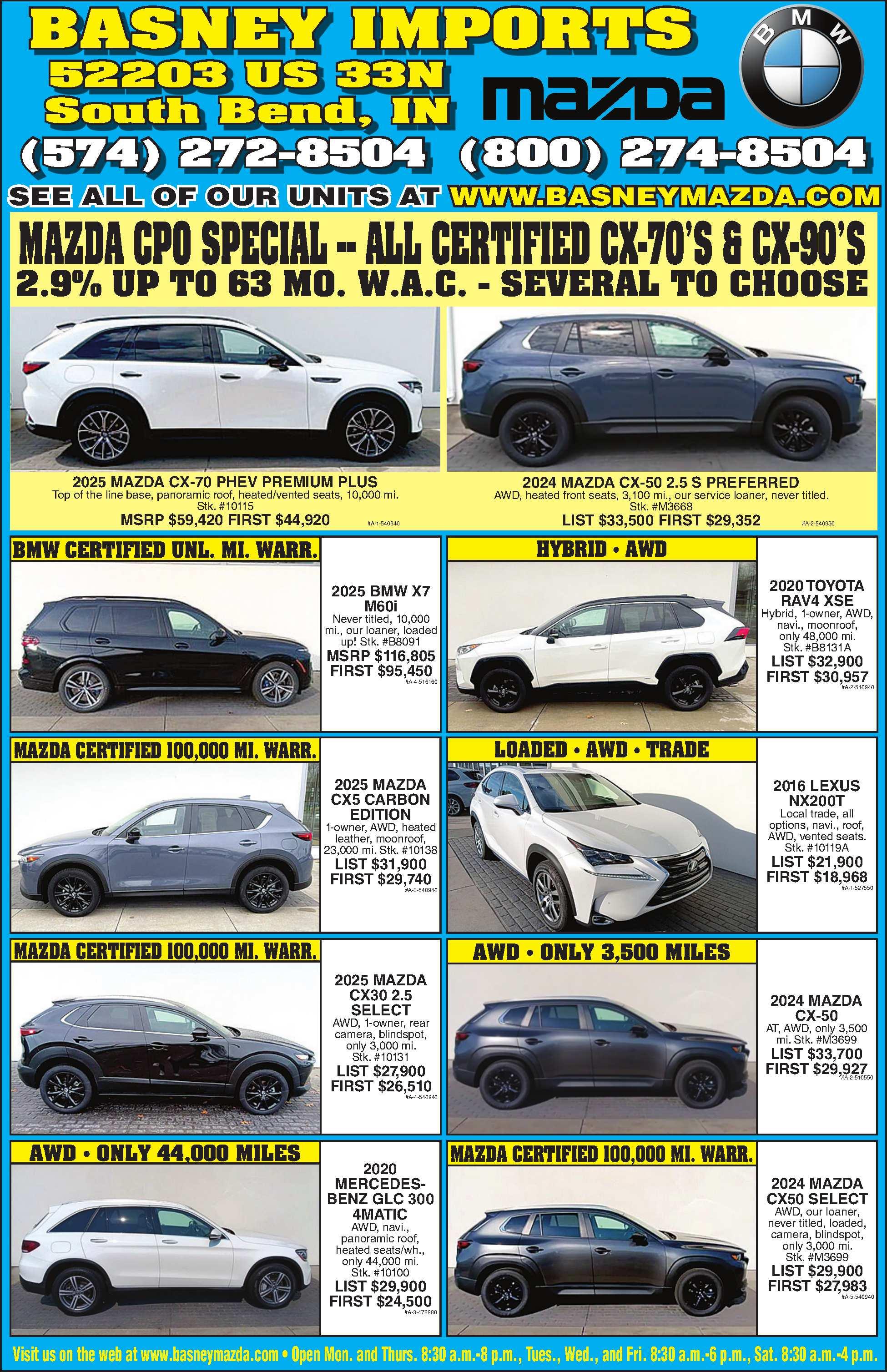 2019 MAZDA CX-5 SIGNATURE AWD, graphite P/heated leather buckets, console, AT, AC, TW, CC, PW, PL, PM, IW, RD, rear camera, AM-FM, aux., call today, priced to sell fast. WAS $24,000 NOW $15,977#A-1-490920