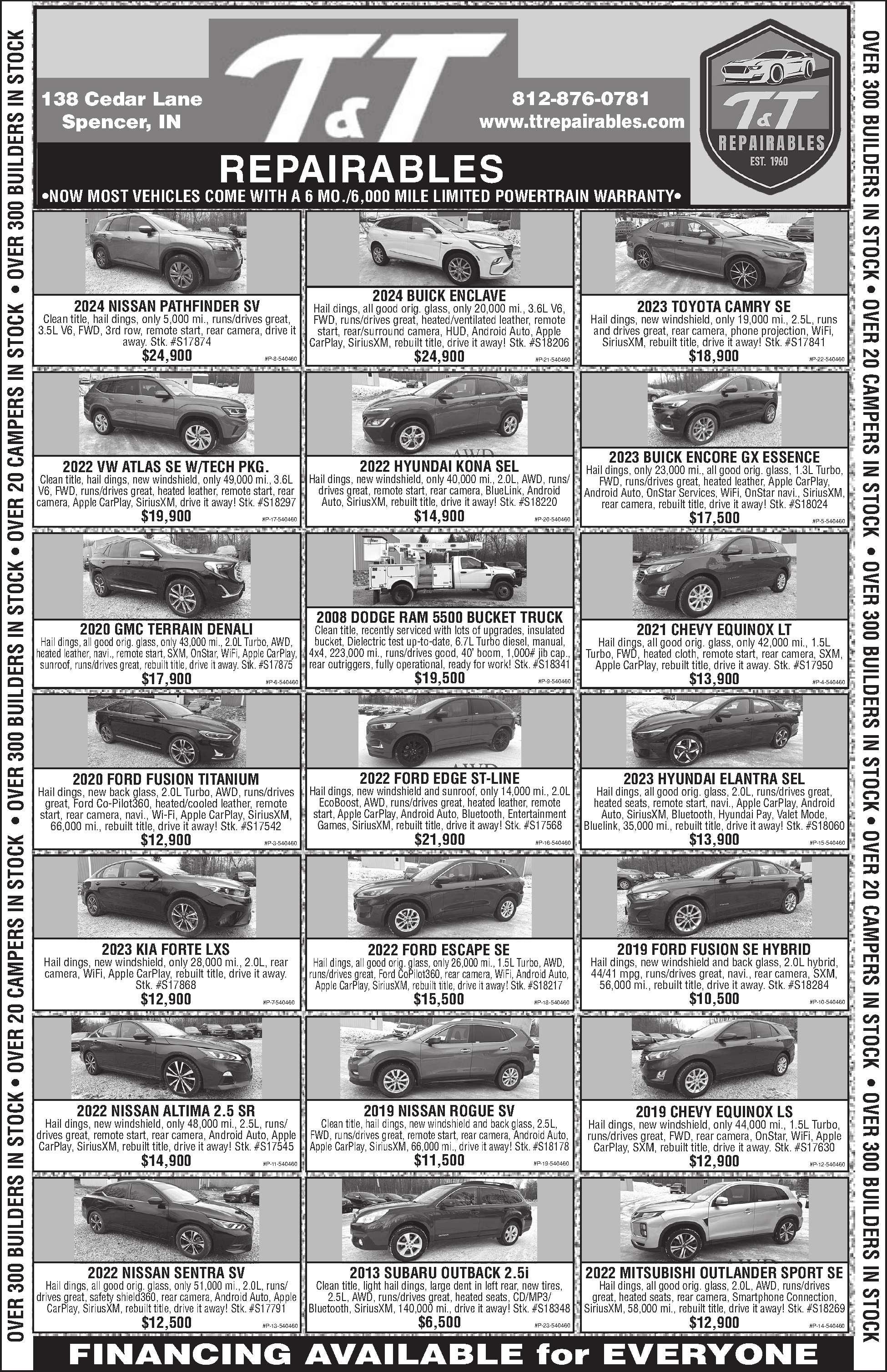 2019BUICKENCOREPREFERRED. 4cyl.,AT, loaded,leather/cloth,only72,000mi.,verylightrear dmg.,runs/drives,replacementpartsavail.,someon hand.$6,500.Parts/BankFinancingavail.Adams Enterprises,Knightstown,IN. www.adamsenterprises.org,765-345-5113