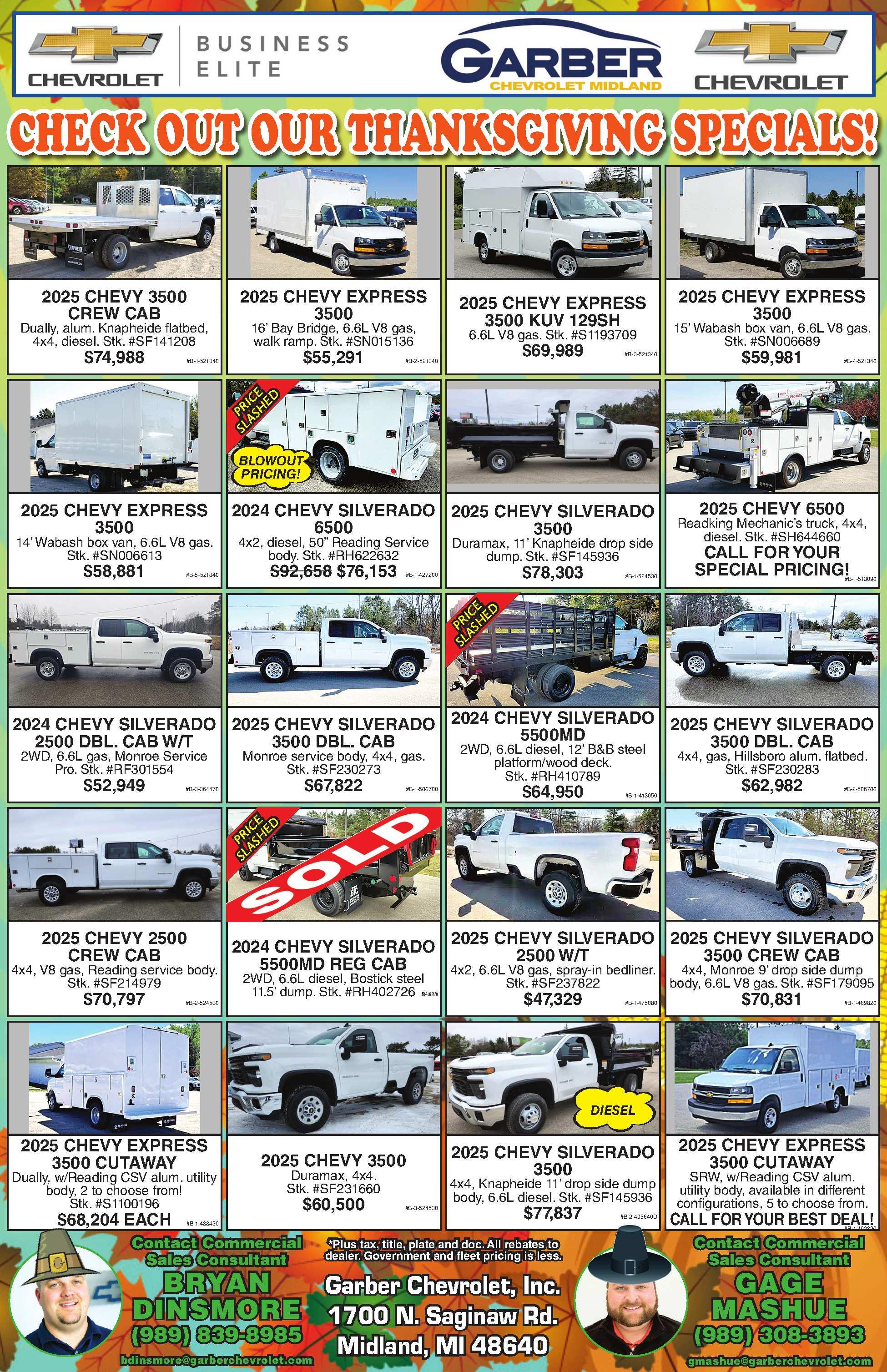 2016CHEVROLETEXPRESSE4500GOSHENSHUTTLE BUS. 15passenger,Duramaxdiesel,DRW,8,093mi.,exc.cond. inandout.PleasecallToddforallthedetails.Smitty’sAutoSales, Angola,IN. 260-665-3440,smittysusa.com 525940