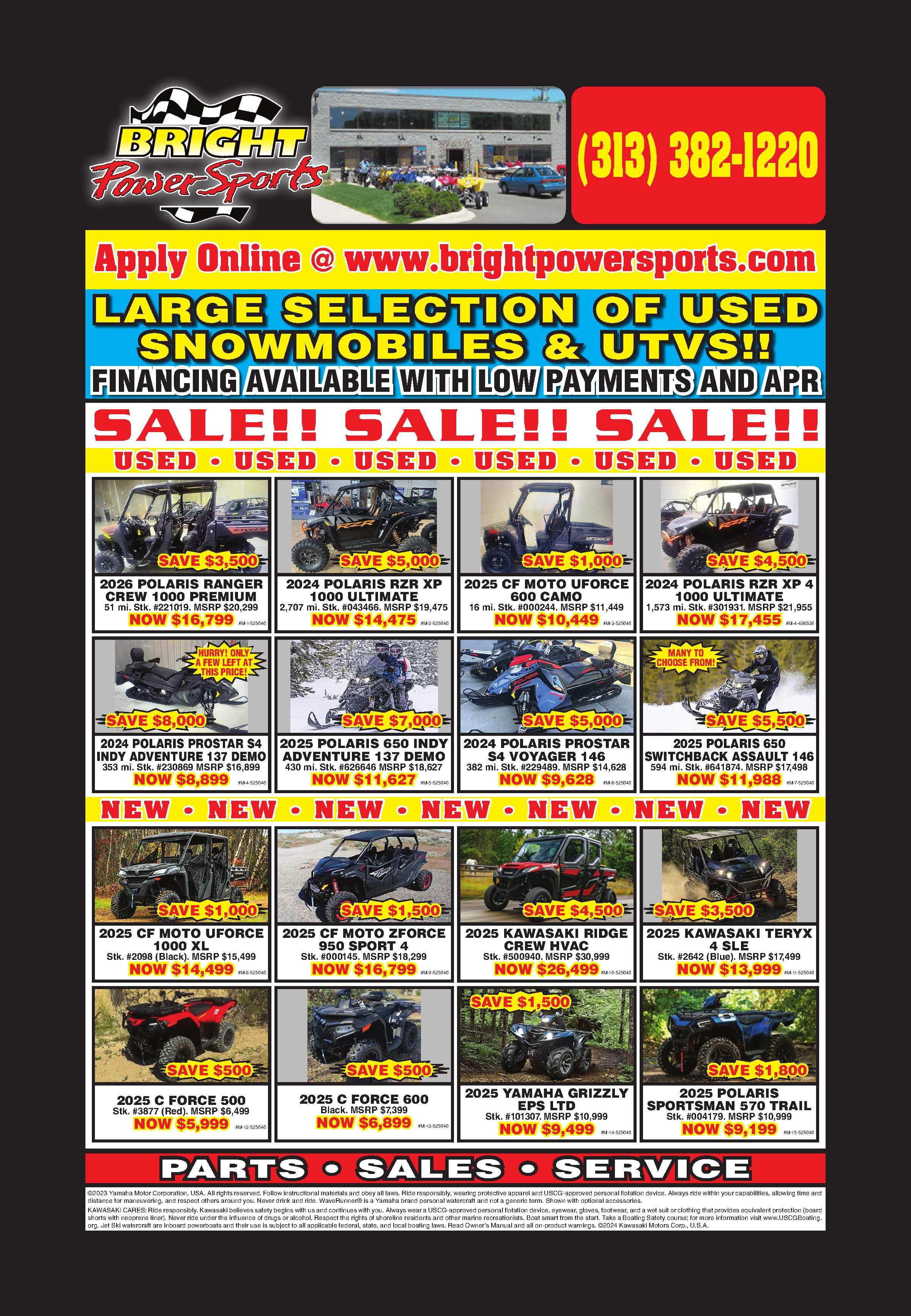 DEMO2024POLARISPROSTARS4INDY ADVENTURE137. Only353miles!MSRP $16,899.Sale$8,899.Save$8,000.Huge SelectionofUsed&NewSnowmobiles.Bright PowerSports,LincolnPark,MI.Visit www.brightpowersports.comor 313-382-1220call