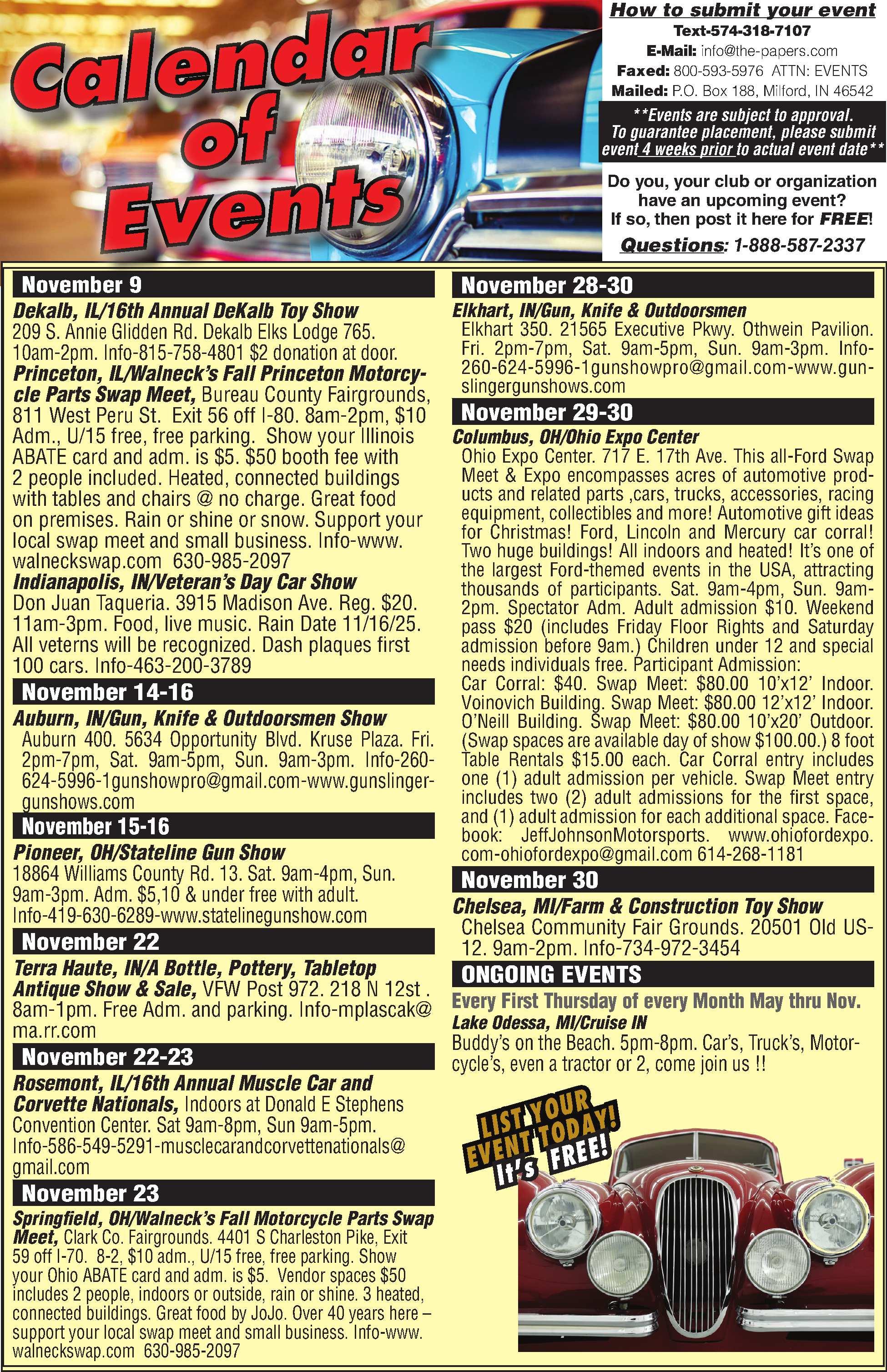WEAREAFULLLINERESTORATION PARTSSTOREFOREARLYCAMARO, CHEVELLE&NOVAS. Sheetmetal,bumpers, moldings,carpet,interiors,rubberseals&much, muchmore.Alwayslookingtobuyprojectcarsor partscars.Stopbyourstore,open6daysaweek: M-F9a.m.-6p.m.&Sat.9a.m.-1p.m.Locatedone halfmileEastofLucasOilRacewayPark. Freeman’sMusclecarMotorsports,10747E.US Hwy.136,Suite101,Indianapolis,IN46234. email:clarencefreeman@att.net 317-328-8360 376120