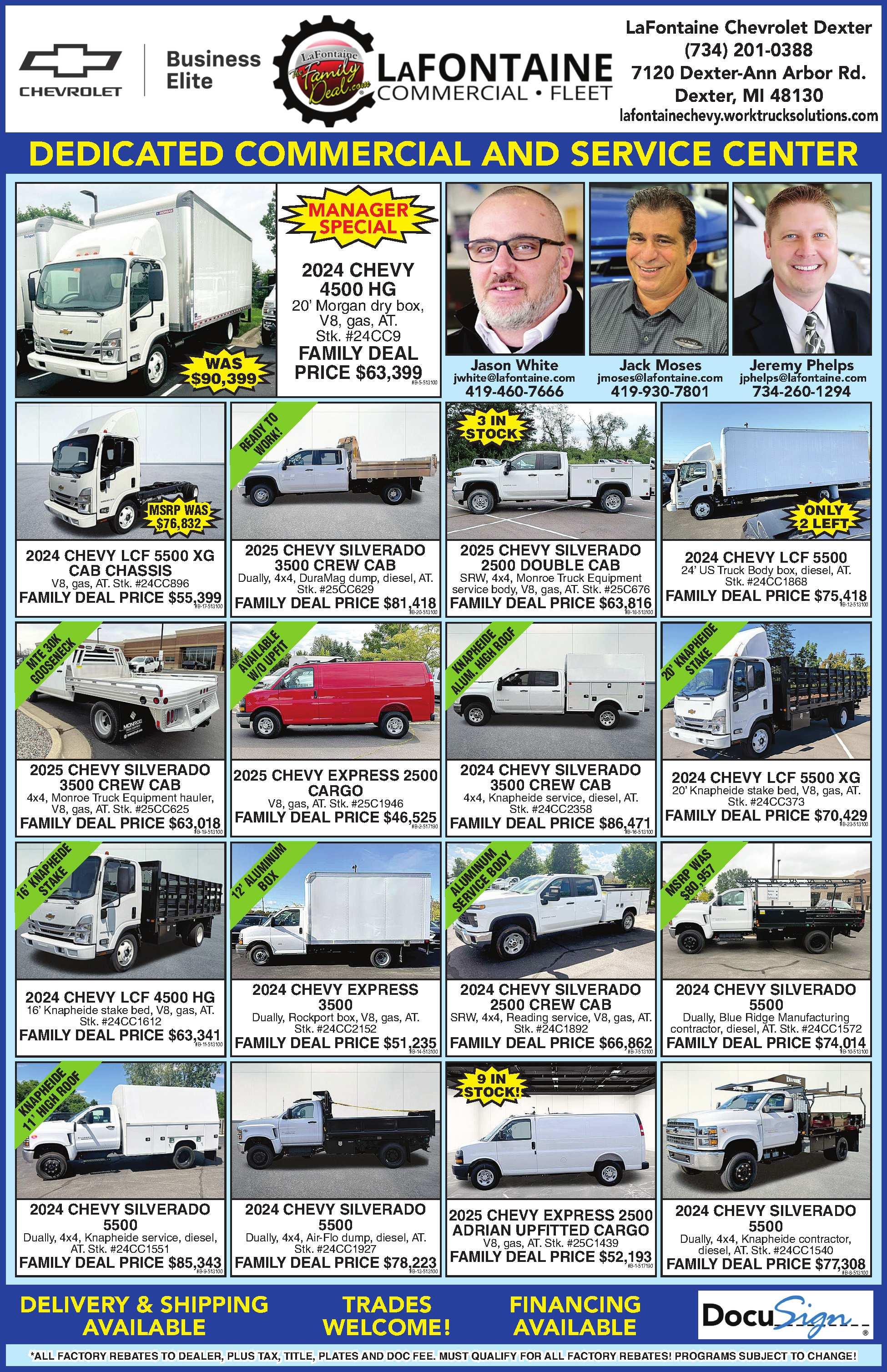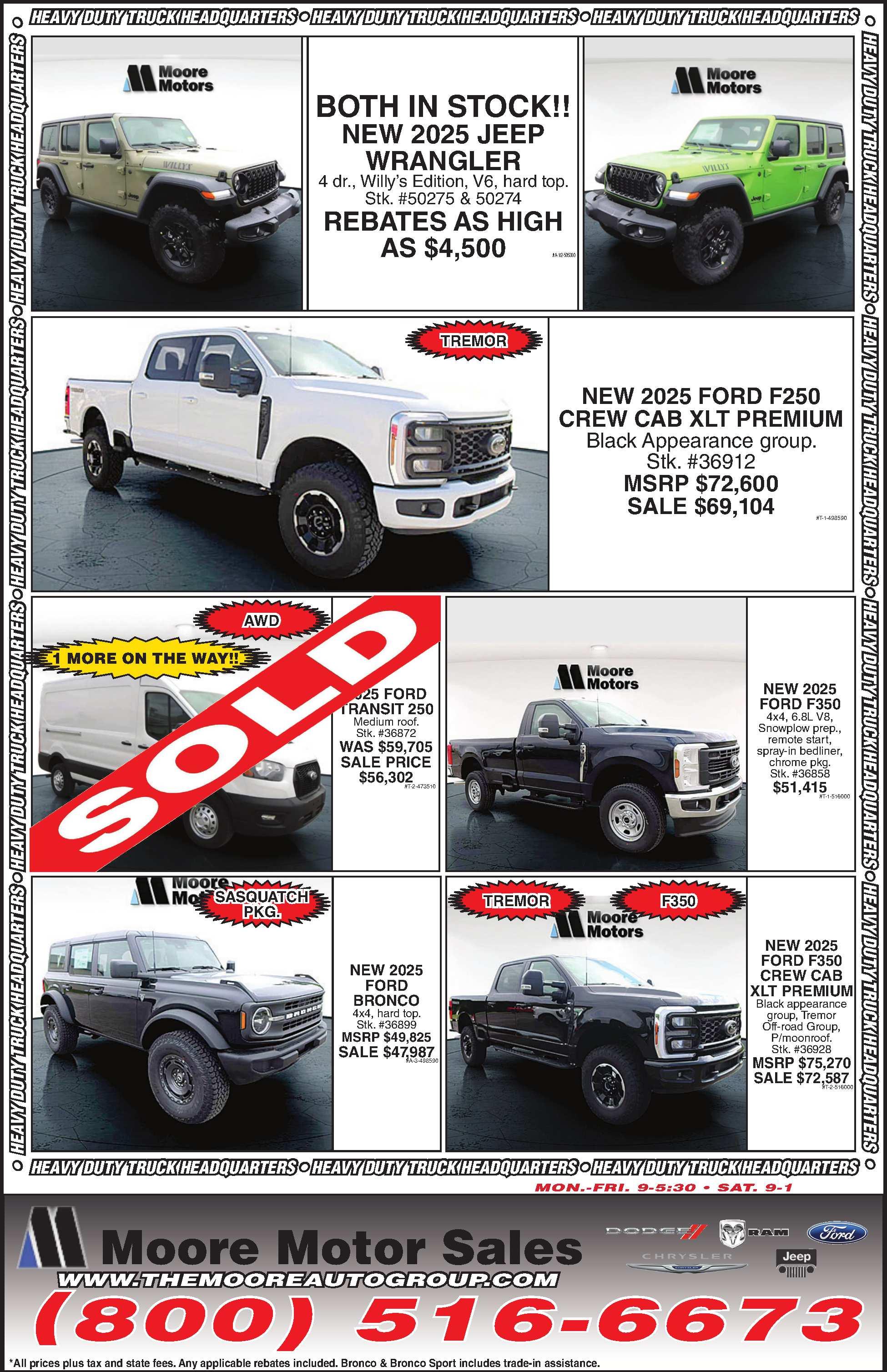 2000FORDF650. 5.9LCummins,6sp. manual,JerrDan21’rollback,163,568 mi.,verygoodcond.$19,500.Don’s TractorSales,Alpena,MI. 989-356-6317