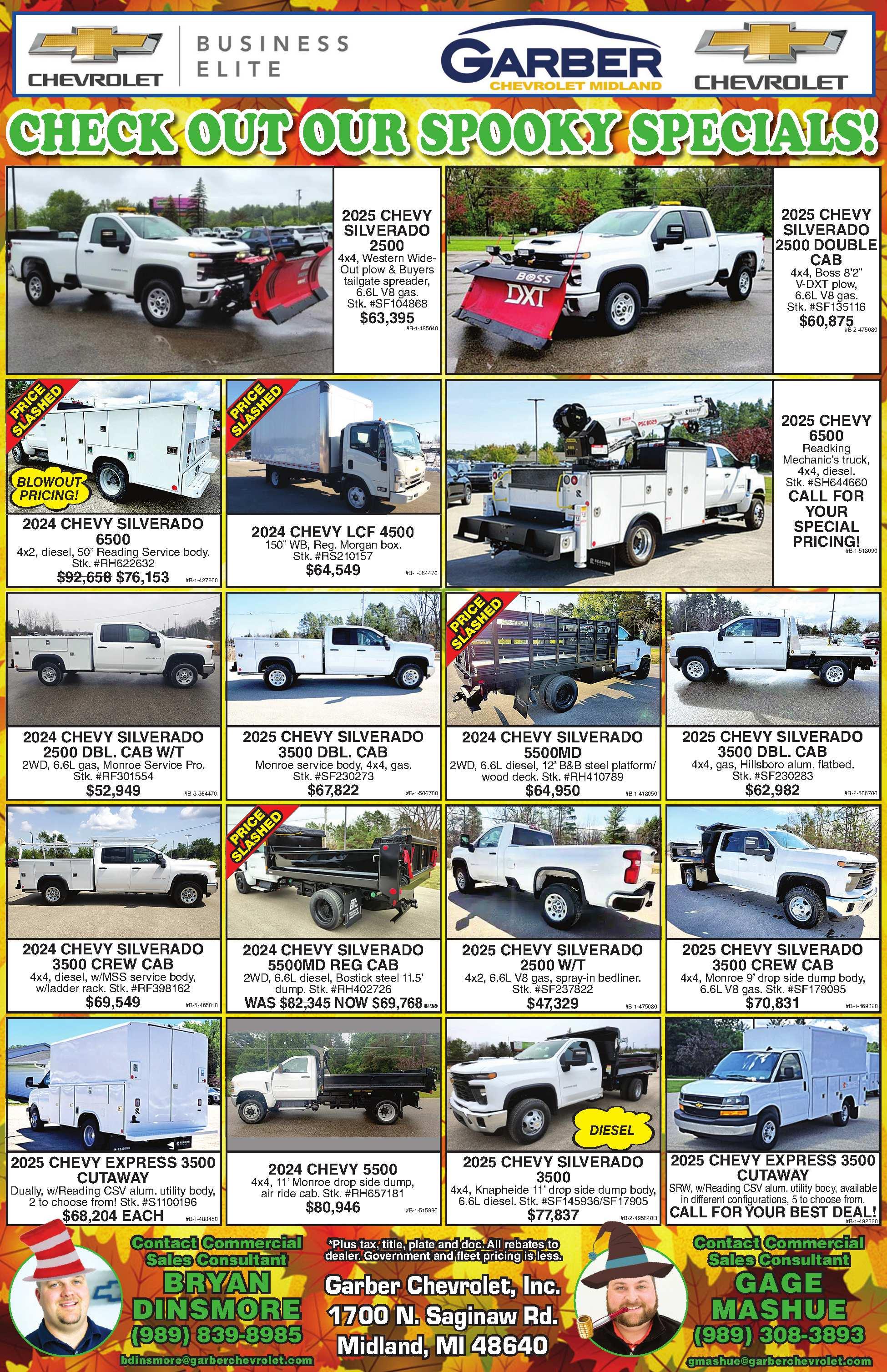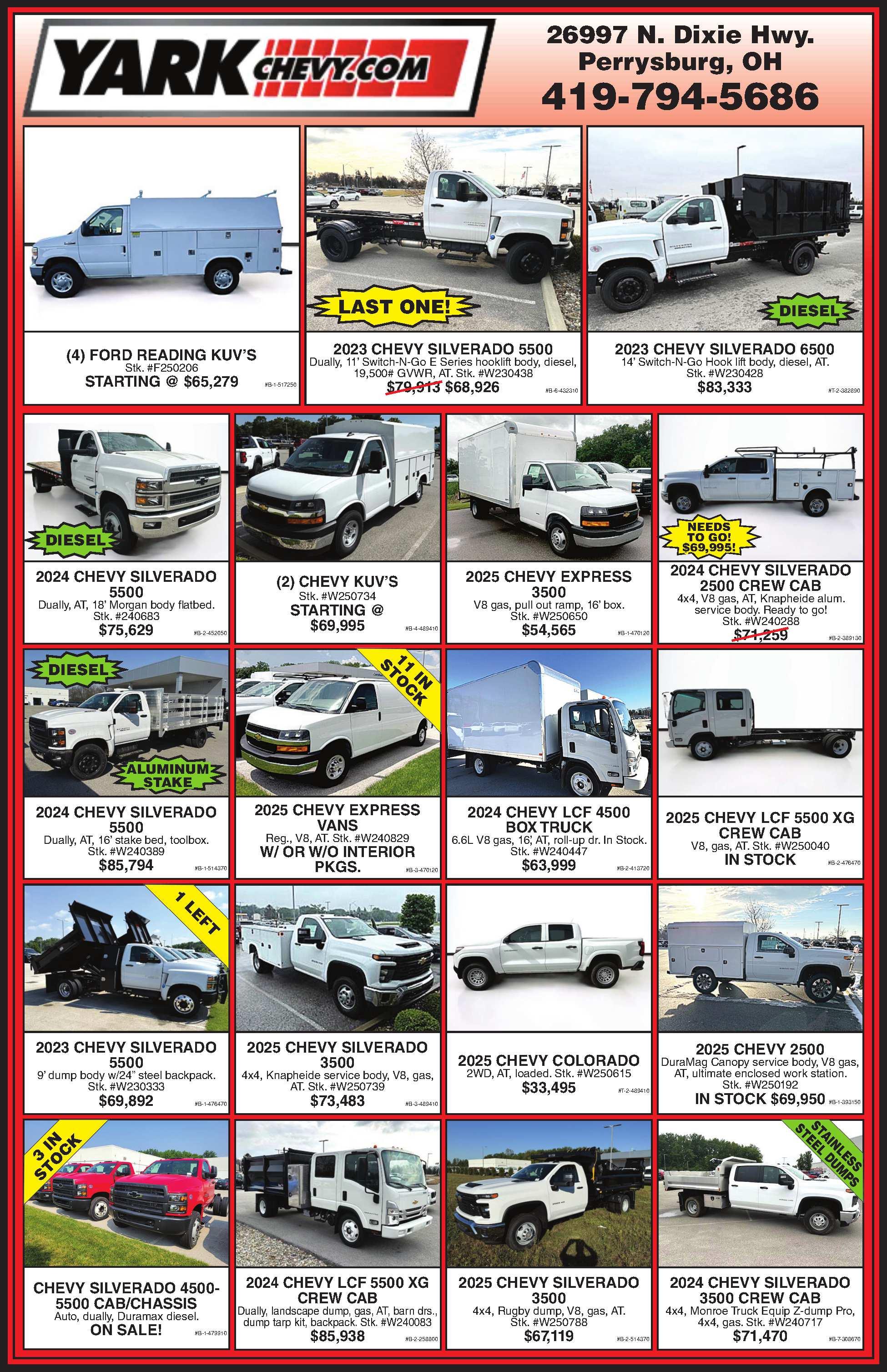 4x4, 6.6L gas w/Monroe 8’ service body. Stk. #3458