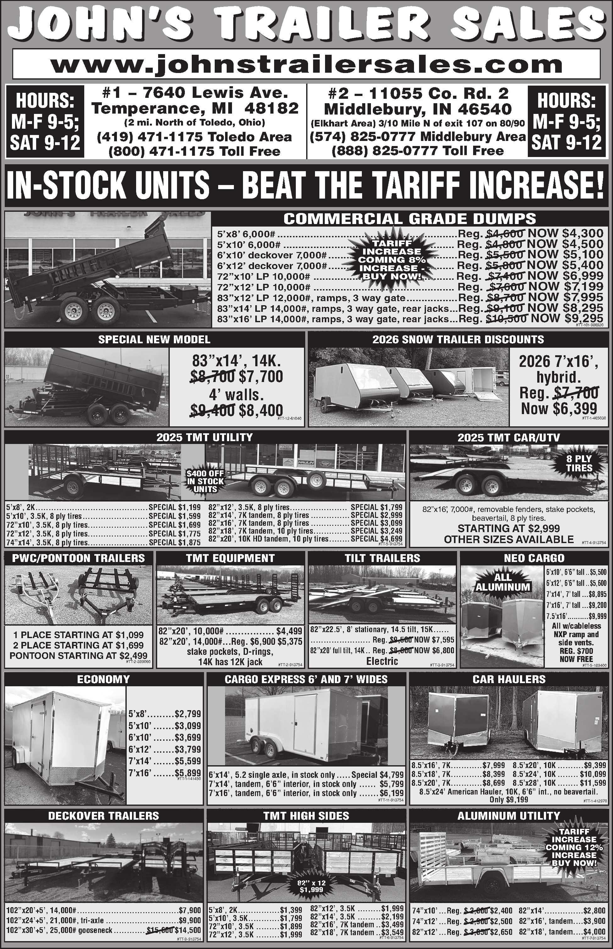 USA TRAILER NEW BOSTON 38771 WILLOW RD. NEW BOSTON, MI 48164 (734) 654-2155