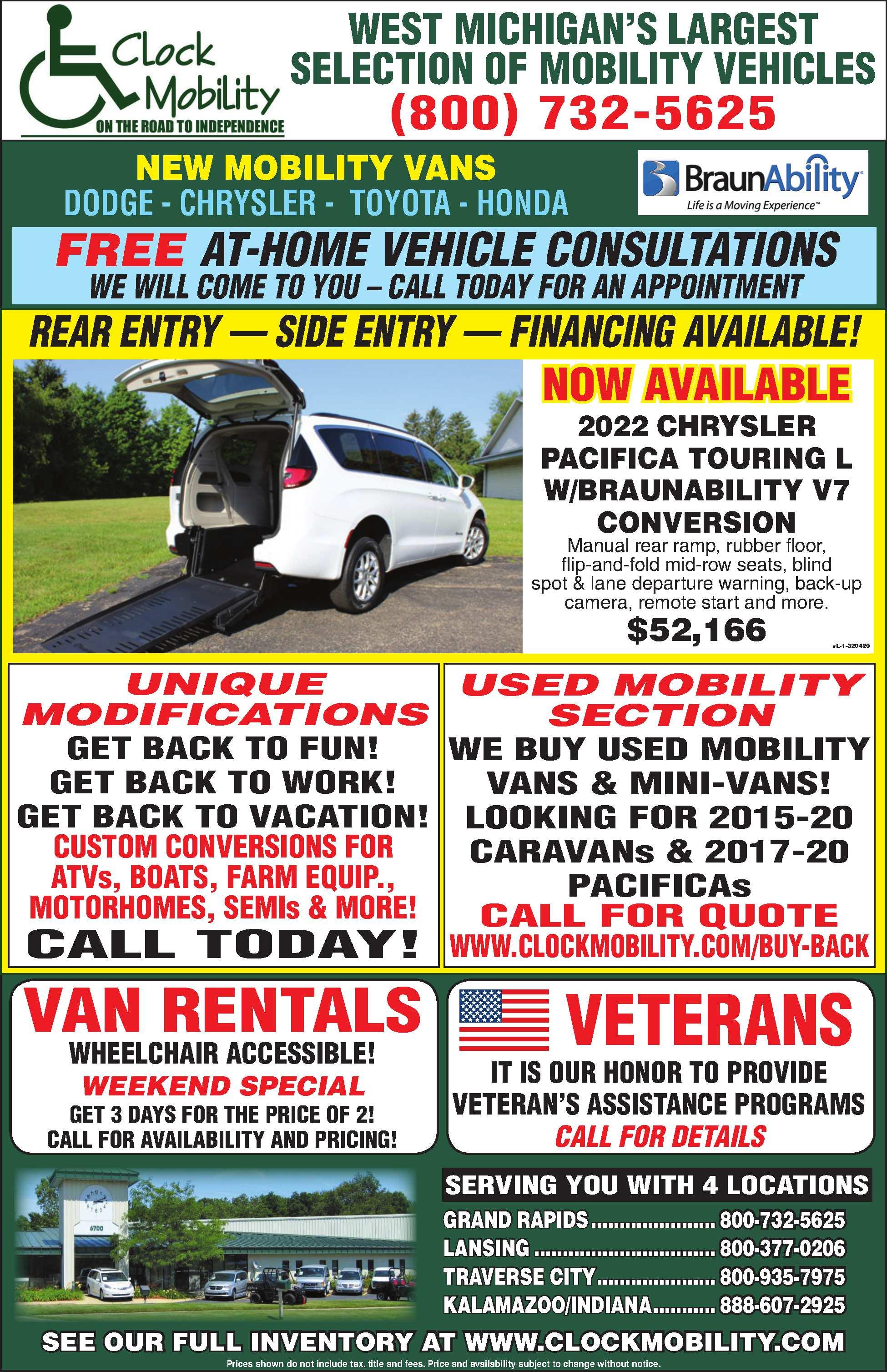 2021FORDTRANSITT350HD148”HIGHROOFXL AWD9PASSENGER. Pluswheelchair,BraunCentury Serieslift,retractabletie-downs,rearheat&air,leather, heatedpwrfrontseats,backupcamera,factoryremote start,handsfreephone,SiriusXM,2setsofkeys, 114,000miles,greatbuy!ONLY!$39,900.IndependenceVans,Highland,MI. www.independencevans.com 248-887-6101 517400