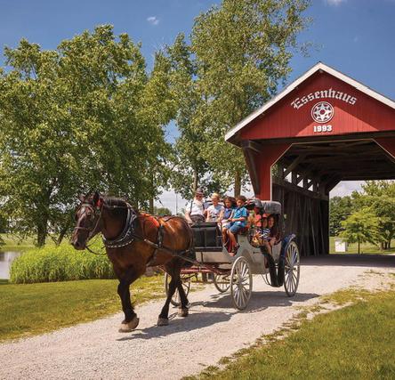 Enjoy a leisurely carriage ride through the covered bridge, past the breathtaking quilt garden, and around the beautiful grounds of Das Dutchman Essenhaus. May-Sept.