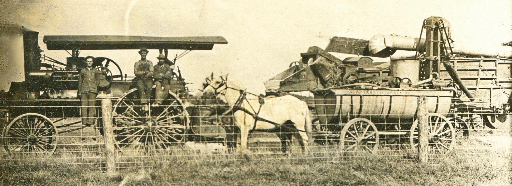 LINDA NEFF of Milford sent several photos of her great-grandfather, Josiah W. Estep, who owned threshing rigs. Her grandmother Hattie Fisher also spoke of fixing big dinners for the threshers. Shown in this photo from 1900 is Josiah W. Estep’s threshing rig set up for harvesting and crews.