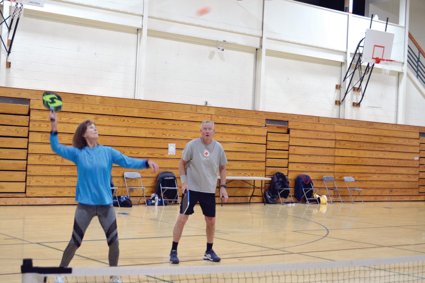 THE LIGHTS in the gym at North Webster Community Center have recently been replaced. People have not been able to play pickleball recently. The good news is the LED lights have been installed and are dimmable so they are not so bright. Pickleball times can be found by visiting nwcommunitycenter.org. Pictured on the court are Barb Sheets and Mike Stewart. —o—
