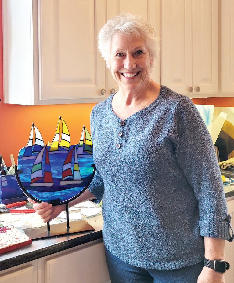 use it as a border for some of my round designs. I use the copper foil method,” said Mahnken. Over the years, Mahnken has done several commissions for clients. “Inspirations for what I do come from so many places. I might see a dragon fly down by
