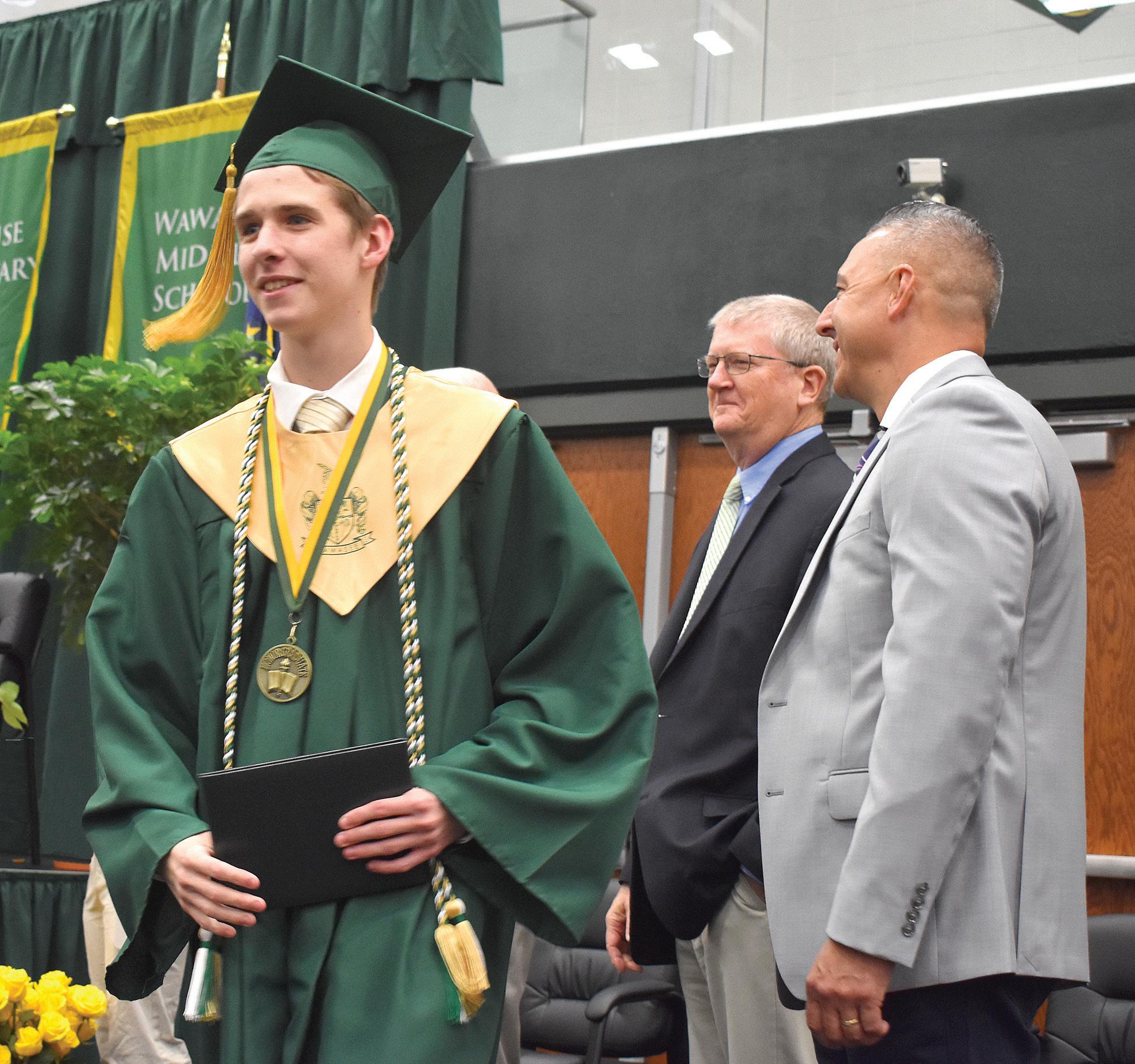 The ceremony began with the class processional, followed by the Wawasee Choir’s rendition of the national anthem, an invocation by graduating senior Cameron Zimmerman and an introduction by