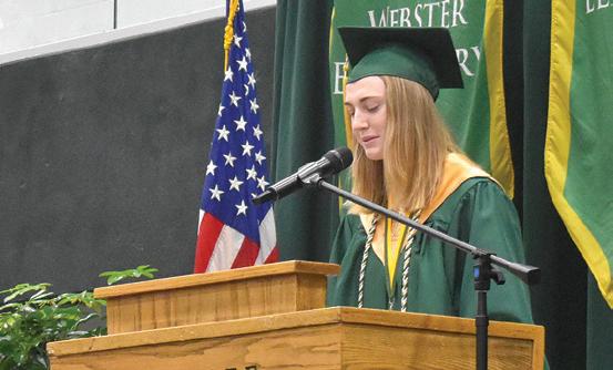 During her valedictorian address, Nadia Whalen thanked the teachers, custodians, office workers, counselors, lunch cafeteria workers, bus drivers, tech workers and others who all played a part in her and her classmate’s graduation. This included librarian Miss Fowble who, said Whalen, “worked endlessly to educate us in the power of reading,” and also recatalogued every book following the “infamous cyber attack of 2023.”