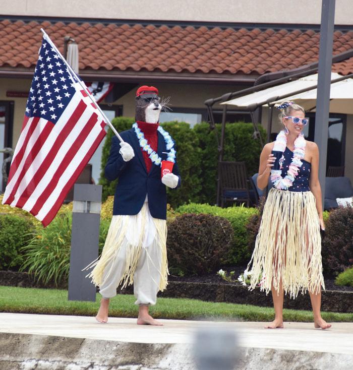 Shown is one of the entries during the 2023 Flotilla where the theme was “Luau on the Lake.” This year’s theme is Family Game Night. Participants are encouraged to decorate their boat highlighting their favorite board or yard game. File photo