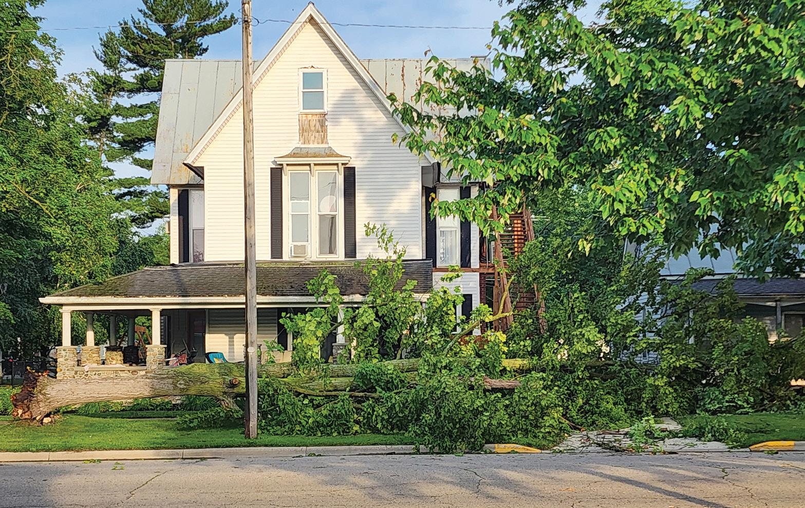 In Milford large trees at the home of Scott and Zoeneya Gingerich, 215 S. Main St., and at 109 N. Main St., the home of Robert and Karrin Haines, were uprooted
