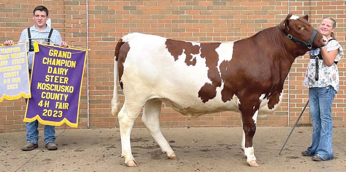 The grand champion beef steer was shown by Jaden Moneyheffer, a member of the Claypool Classics. He received $6,600. He is the son of Kayla Leininger and Justin Moneyheffer and is in his sixth year of 4-H. Moneyheffer also had dairy and sheep projects.
