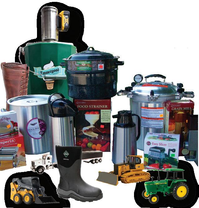 Canning supplies, kitchenware, Rada Cutlery, Fuller Brush, musical clocks, Lifetime tables and chairs, games, farm toys, books, dolls, home décor, homemade rugs, Shipshewana spices and much more.