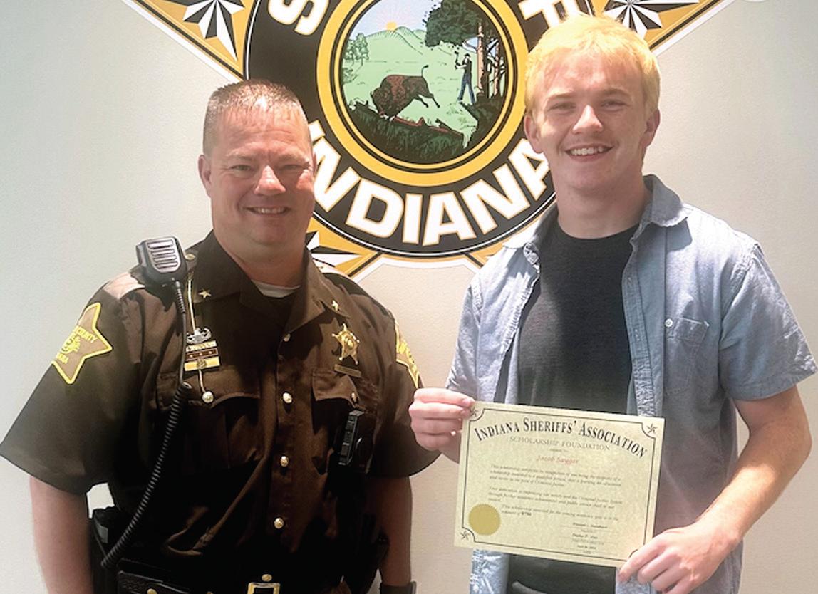 SCHOLARSHIP RECIPIENT — Sheriff Travis Heishman presented Jacob Sayger with a scholarship on behalf of the Indiana Sheriff’s Association in the amount of $750. Sayger is a senior at Maconaquah High School and plans to attend Indiana University, Kokomo, in the fall. Upon completion of his post-secondary education, he expressed interest in working for the Indiana State Police. Shown are Heishman, left, and Sayger. Photo provided by Travis Heishman.