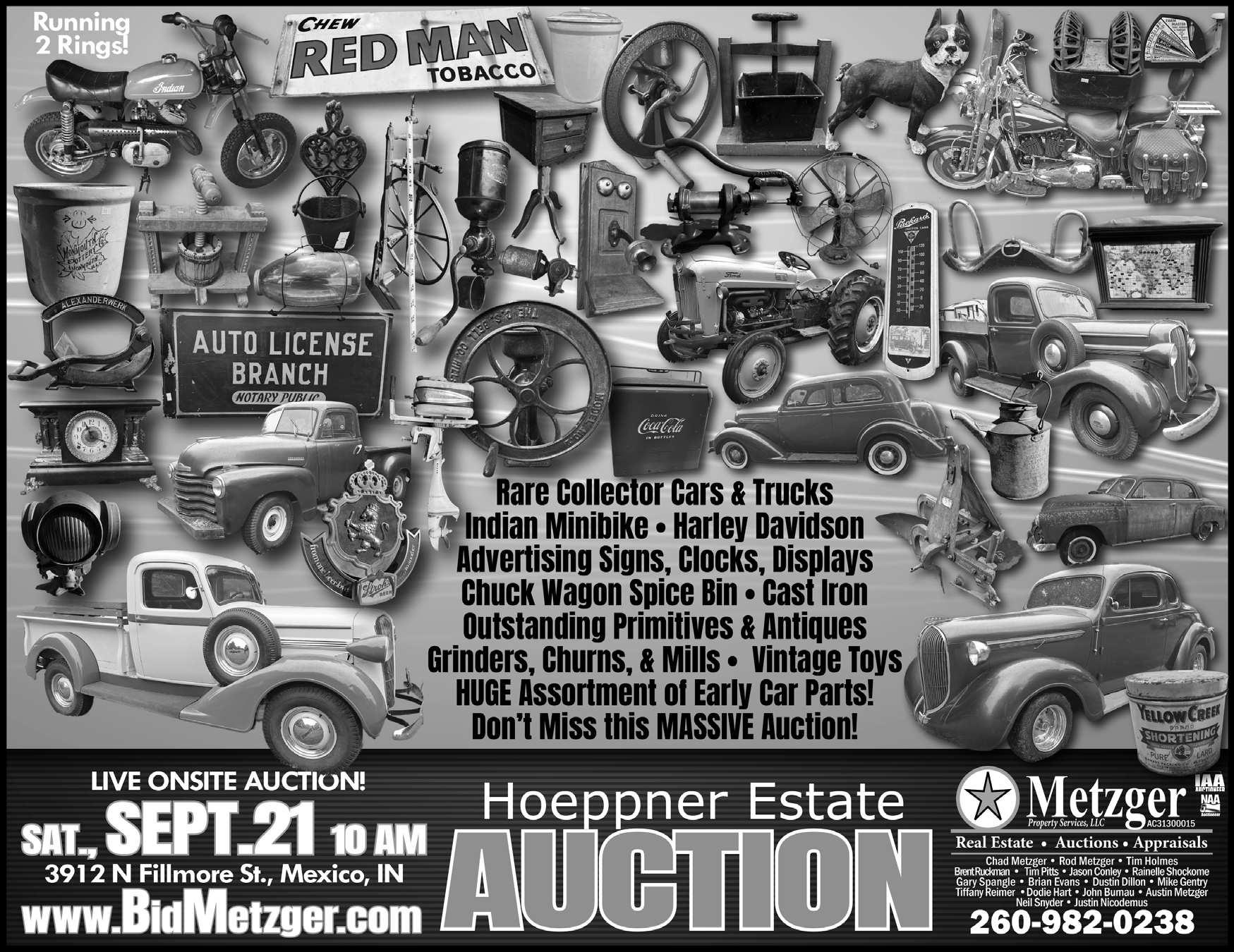 10 a.m. Saturday, Sep. 21. Located at 3912 N. Filmore St., Mexico. Collector cars and trucks, minibike,