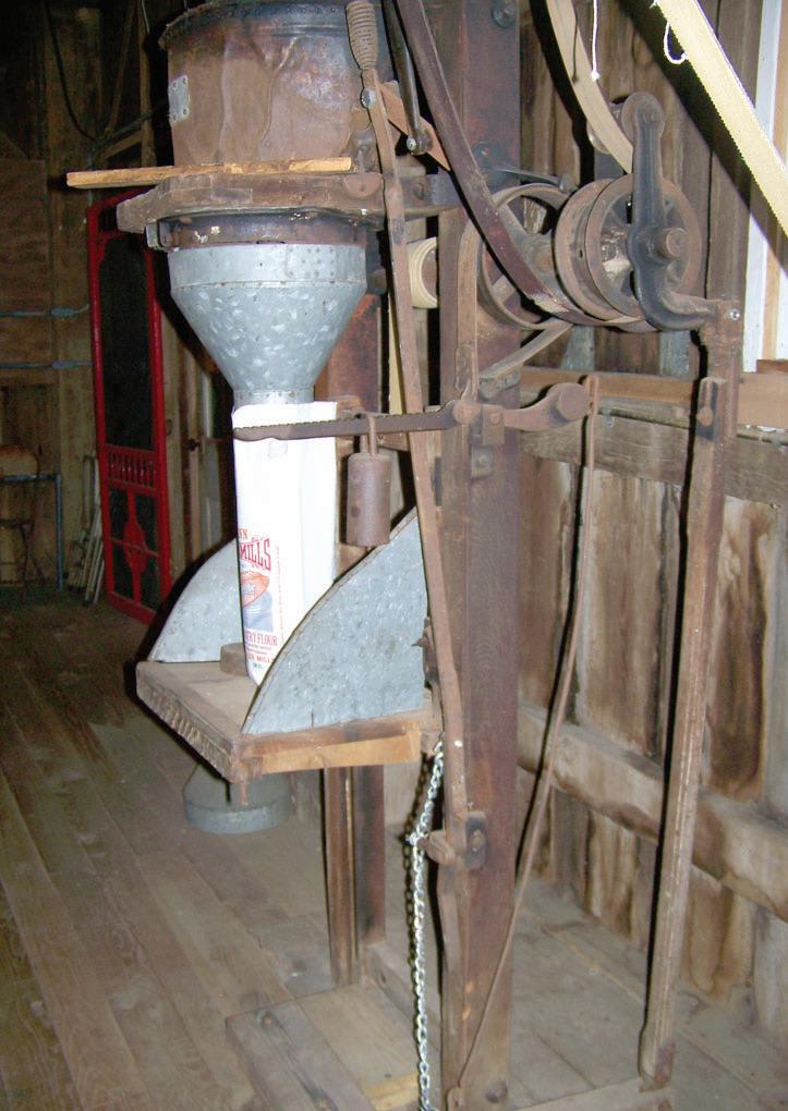 Wagons full of wheat or corn were pulled onto the mill’s scale, weighed, unloaded and weighed again to determine the farmer’s payment. The grain went into a bin in the basement.