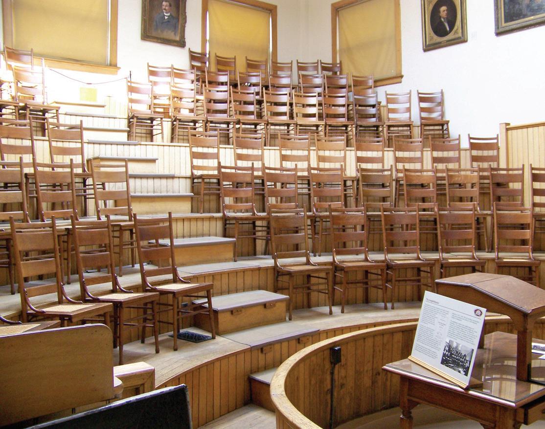 TEACHING AMHPITHEATER The steeply-banked teaching amphitheater in the Pathology Building is where medical students and physicians learned about mental and nervous system disorders, witnessed autopsies and viewed behavior of patients from Central State Hospital for the Insane.