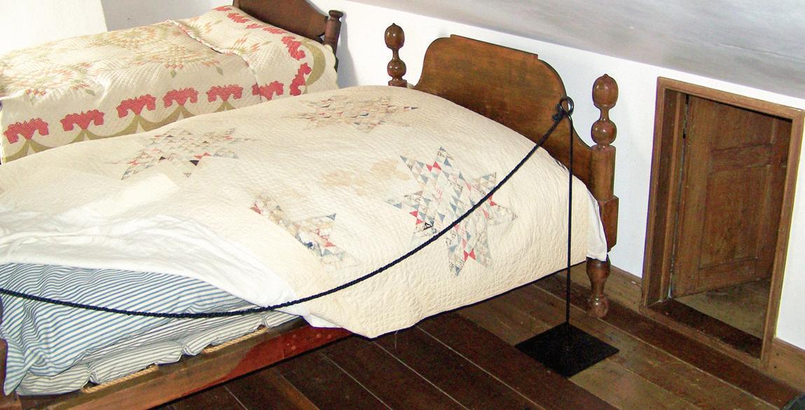 The house, which is a State Historic Site and is a registered National Historic Landmark, was carefully planned for the purpose of hiding runaways. The dining room, for instance, has five doors leading outside for a quick getaway and two staircases to the second floor. They hid young girls between the straw and feather ticks in a bed, in a secret garret in a bedroom and in the basement.