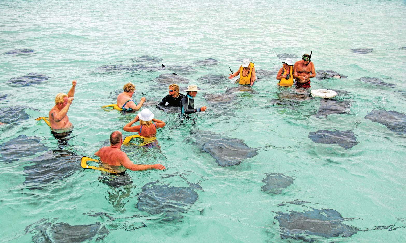 Grand Cayman, largest of the three islands (22 miles long, eight miles wide), is home to Stingray City, the name given to shallow sandbars which are home to a gathering of those unusual creatures. After receiving assurances that I could walk among and even pet the strange-looking animals, I got up close and personal with several of them.
