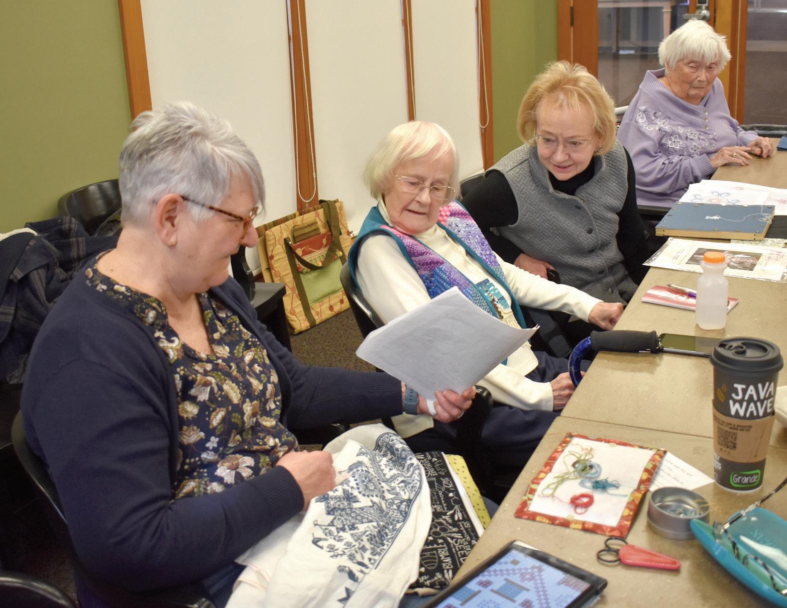 Members cite utilizing their creativity and learning new techniques as benefits of stitching with the guild. Continued on page 3