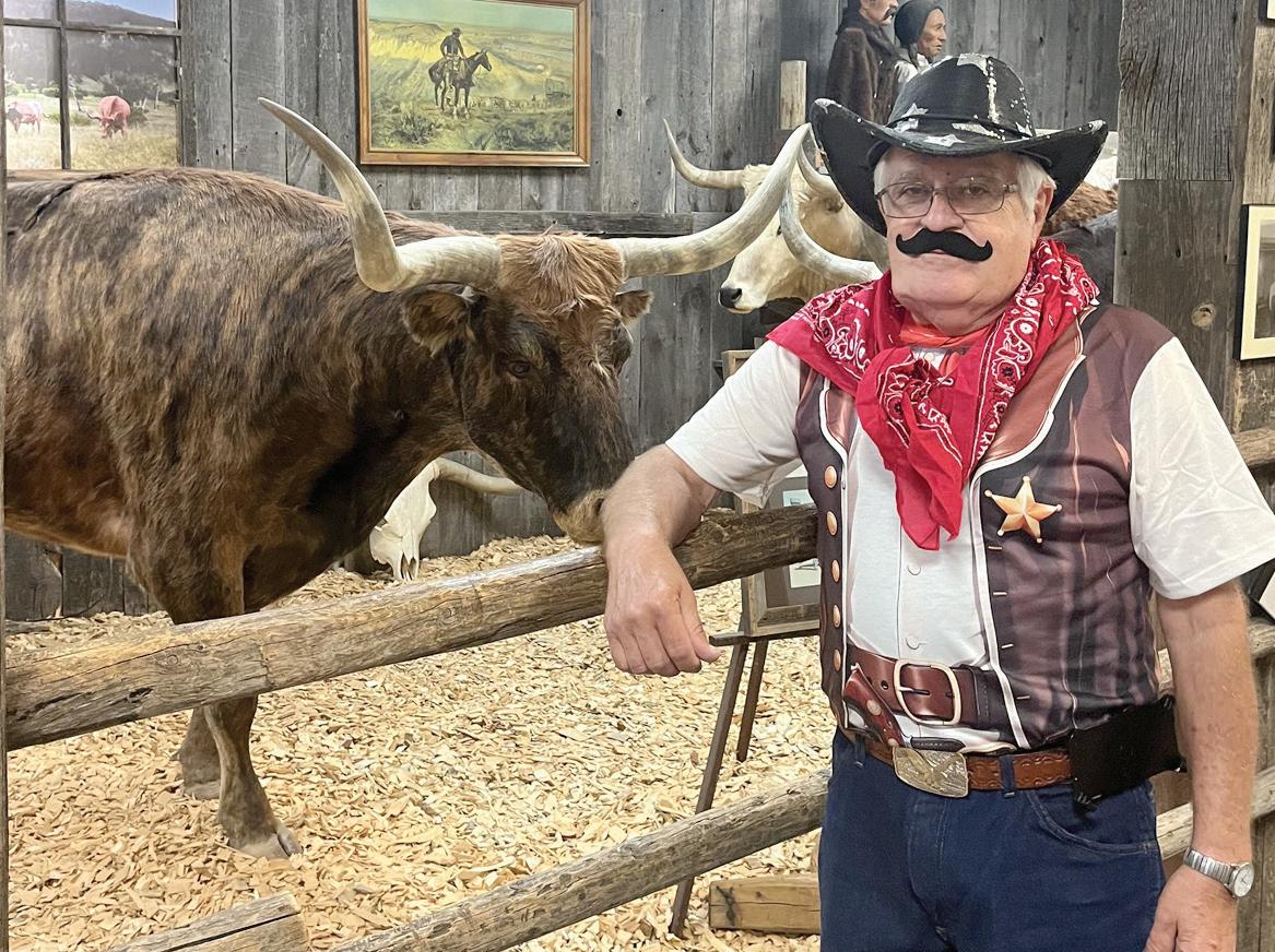 TIME — Dennis Donathen, owner of DD Resales, uses costumes to tie in with the theme of each of his tours. This photo was taken during a Yellowstone National Park tour. Visit www.grouptrips. com/ddresales or call (574) 220-8032 for more information. Photo provided by DD Resales.