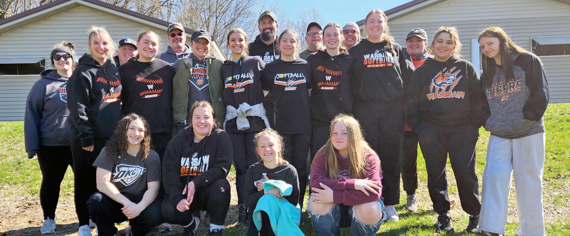 cabins and the cafeteria were cleaned and tidied up. Shown are members of the Warsaw Lady Tigers softball team. In front from left are Addyson Sainer,